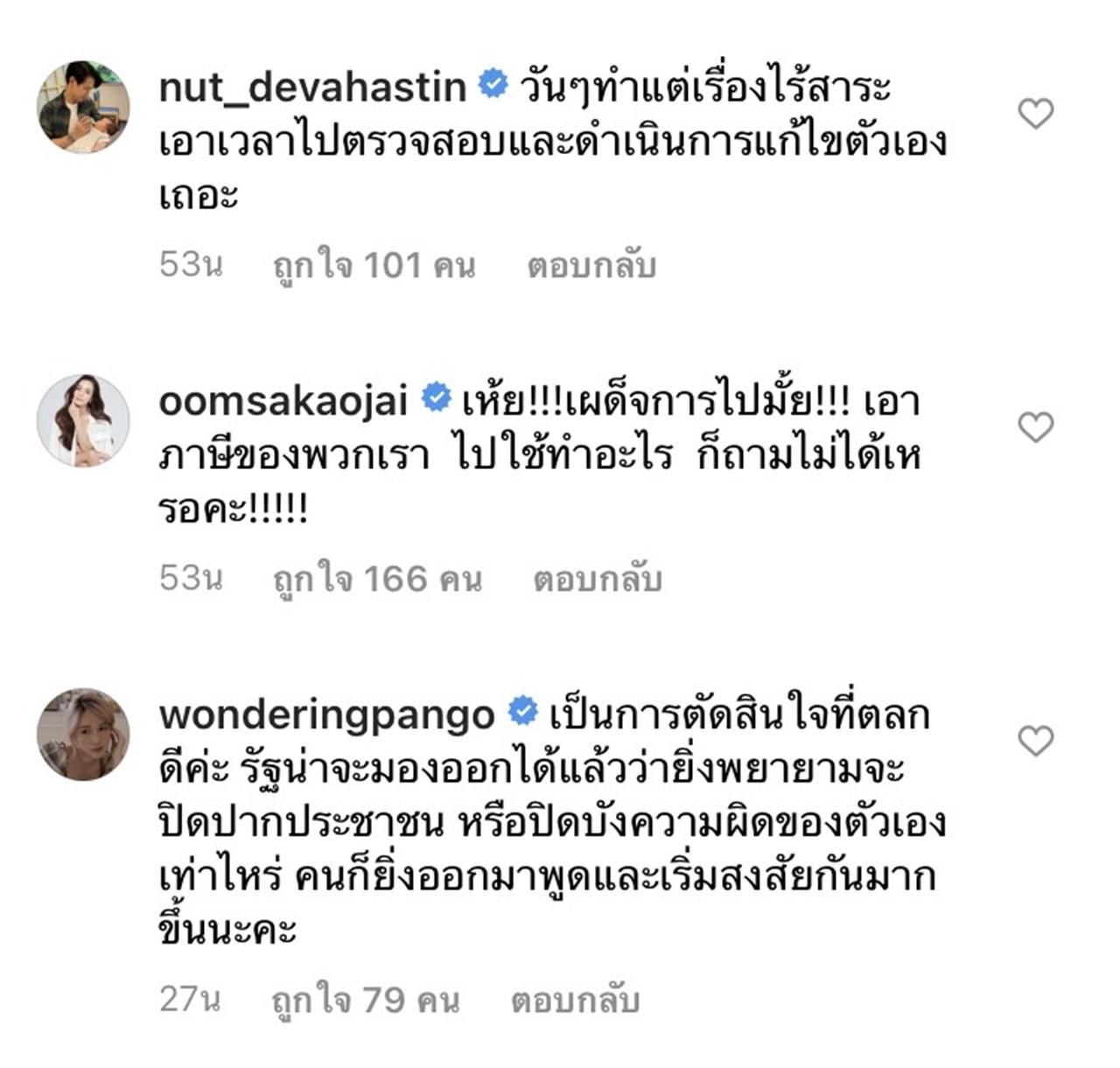 ทำให้นักแสดง คนดังหลายคน ต่างเข้ามาคอมเมนต์แสดงความคิดเห็นถึงเรื่องนี้กันเป็นจำนวนมาก อาทิ