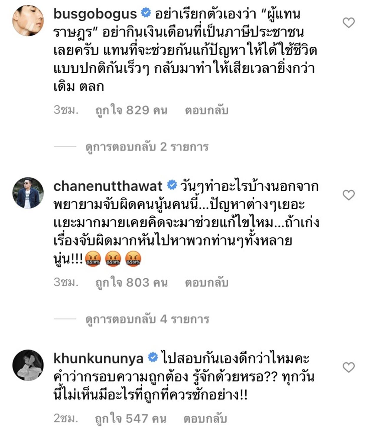 เชน ณัฐวัฒน์ "วันๆทำอะไรบ้างนอกจากพยายามจับผิดคนนู้นคนนี้…ปัญหาต่างๆเยอะเเยะมากมายเคยคิดจะมาช่วยแก้ไขไหม…ถ้าเก่งเรื่องจับผิดมากหันไปหาพวกท่านๆทั้งหลายนู่น!!!"