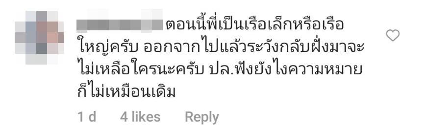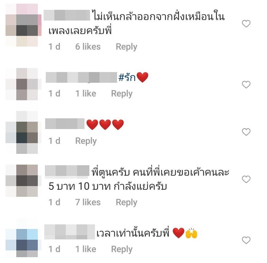 ตอนนี้พี่เป็นเรือเล็กหรือเรือใหญ่ครับ ออกจากไปแล้วระวังกลับฝั่งมาจะไม่เหลือใครนะครับ ปล.ฟังยังไงความหมายก็ไม่เหมือนเดิม, ไม่เห็นกล้าออกจากฝั่งเหมือนในเพลงเลยครับพี่, พี่ตูนครับ คนที่พี่เคยขอเค้าคนละ 5 บาท 10 บาท กำลังแย่ครับ, ผมอยากให้พี่ออกมาพูดอะไรบ้างนะครับ ผมยังหวังให้พี่ออกมา Call out นะครับ ฯลฯ