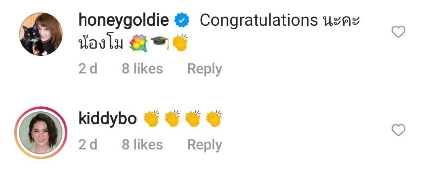 โดยมีทั้งแฟนๆ และเพื่อนๆ ในวงการบันเทิงร่วมแสดงความยินดีมากมาย อาทิ ไอซ์ อภิษฎา, ซี ศิวัฒน์, ไผ่ พาทิศ, อ้น ศรีพรรณ, ญิ๋งญิ๋ง ศรุชา, ฮันนี่ ภัสสร, ณัฏฐ์ เทพหัสดิน ณ อยุธยา, ฐิสา วริฏฐิสา ฯลฯ