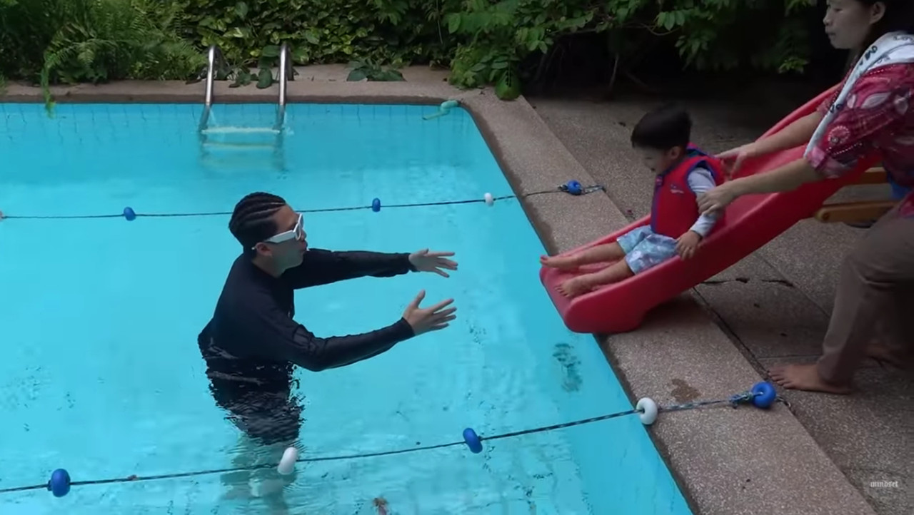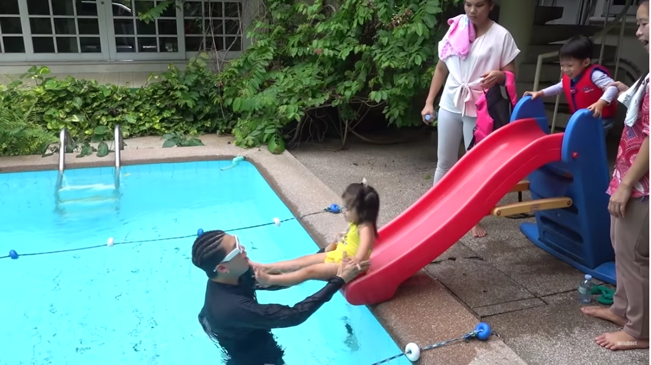 เมื่อไปถึงคุณย่าปุ๊กได้เตรียมของเล่นเซอร์ไพรส์หลานๆ ทั้งรถเด็กเล่นของ มีก้า และเก้าอี้ไว้นั่งกินข้าวให้ มีญ่า เมื่อหลานๆ เห็นสระว่ายน้ำต่างก็ร้องเรียกจะเล่นกันยกใหญ่ งานนี้พ่อป๊อกเตรียมเสื้อผ้ามาพร้อมพาลูกๆ ลงสระว่ายน้ำ เล่นกันอย่างสนุกสนาน มาร์กี้ ก็ได้ชวนคุณย่าลงเล่นน้ำกับเด็กๆ ย่าปุ๊ก ก็บอกว่า ขอนั่งดูหลานเล่นดีกว่า