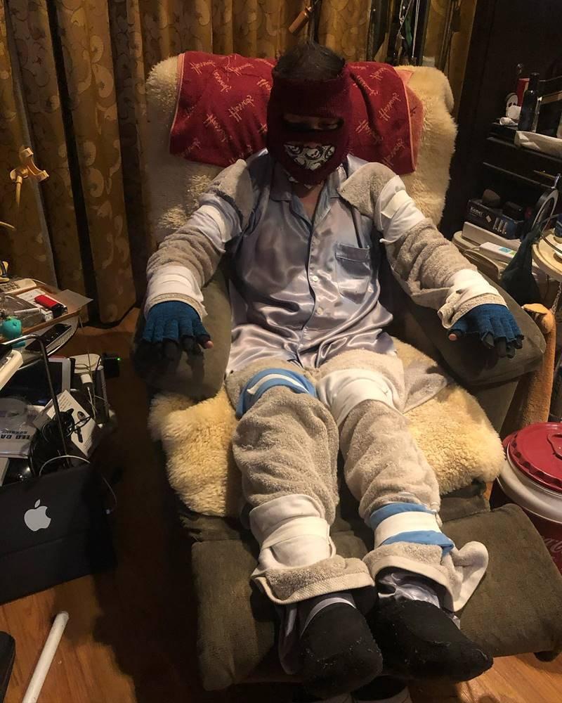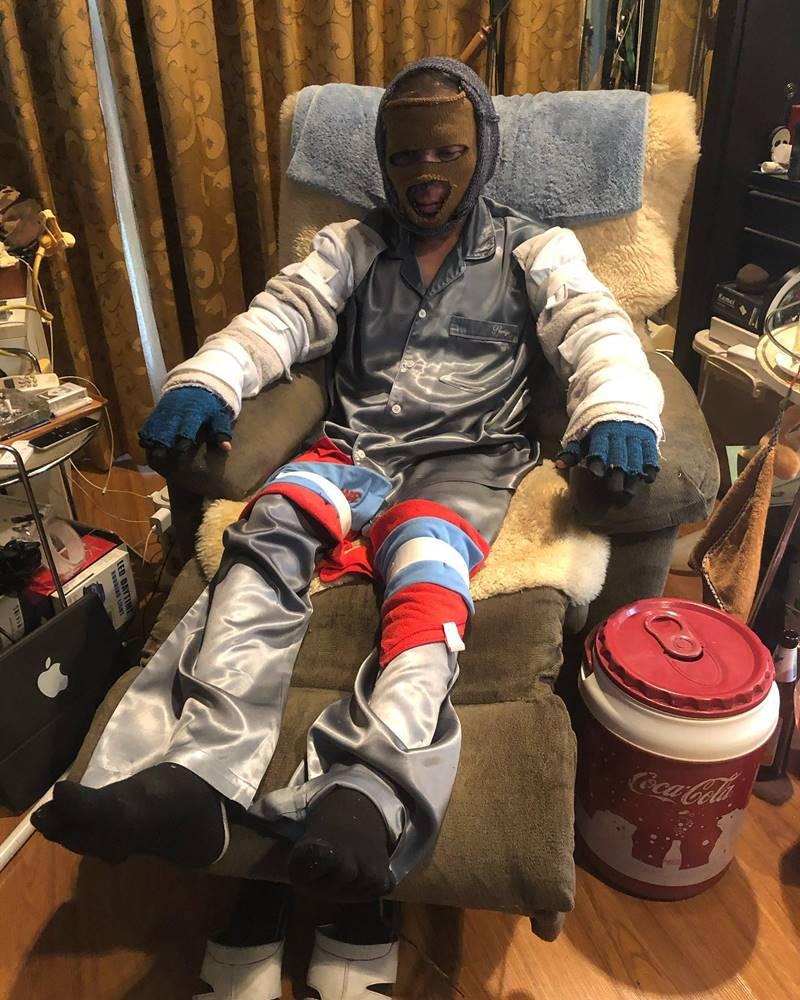 แต่ด้วยสภาวะโควิด ธุรกิจที่ผีเคยทำทุกอย่างมันหยุดหมด และตัวเองก็ป่วยด้วย ก็ไม่สามารถออกมาทำอะไรได้ ลงทุนทำขนมจีนก็หมด เพราะฉะนั้นการรักษาตัวเองไม่มีอะไรมากครับ ซื้ออาหารกินอย่างเดียว และซื้ออุปกรณ์พวกวาสลีน ผ้าก๊อซ ก็ใช้เยอะเพราะต้องทาทั้งตัว ถุงมือก็ DIY หน้ากากกันหนาวกันลมก็ทดลองจนรู้ว่าใช้ได้จริง ตอนนี้ก็พัฒนาเป็นซื้อไหมพรม และมีคนซื้อให้เป็นส่วนใหญ่ เพื่อนก็ช่วยหาให้”