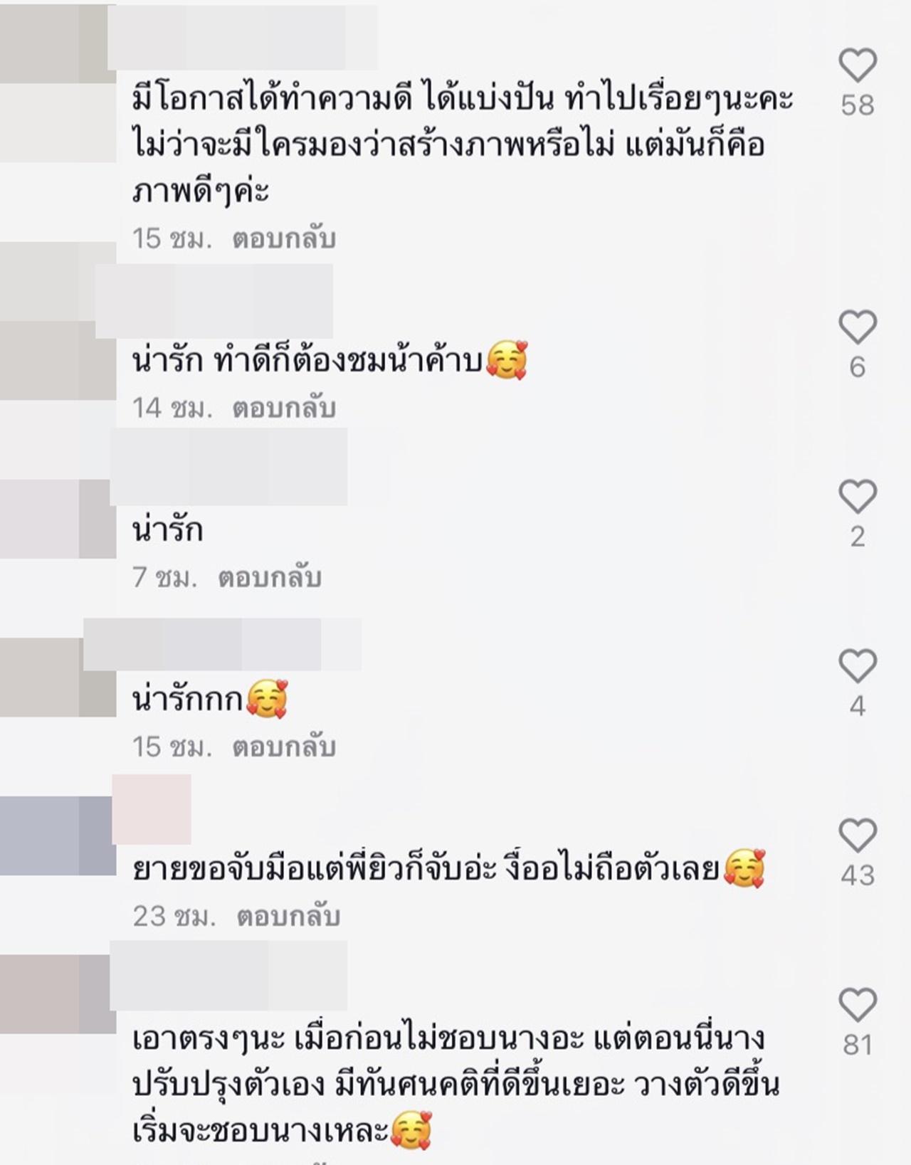 หลังจากที่ เจนนี่ ได้หมดถ้าสดชื่น โพสต์คลิปดังกล่าวไป ก็มีแฟนๆ ของเธอเข้ามาคอมเมนต์ชื่นชมในความมีน้ำใจของสาวเจนนี่อย่างมากมาย รวมไปถึงคนที่ไม่เคยชอบเจนนี่ก็ขอเปลี่ยนความรู้สึกเมื่อได้เห็นคลิปนี้ที่เจนนี่ได้ช่วยอุดหนุนหนังตะลุงของตากับยาย