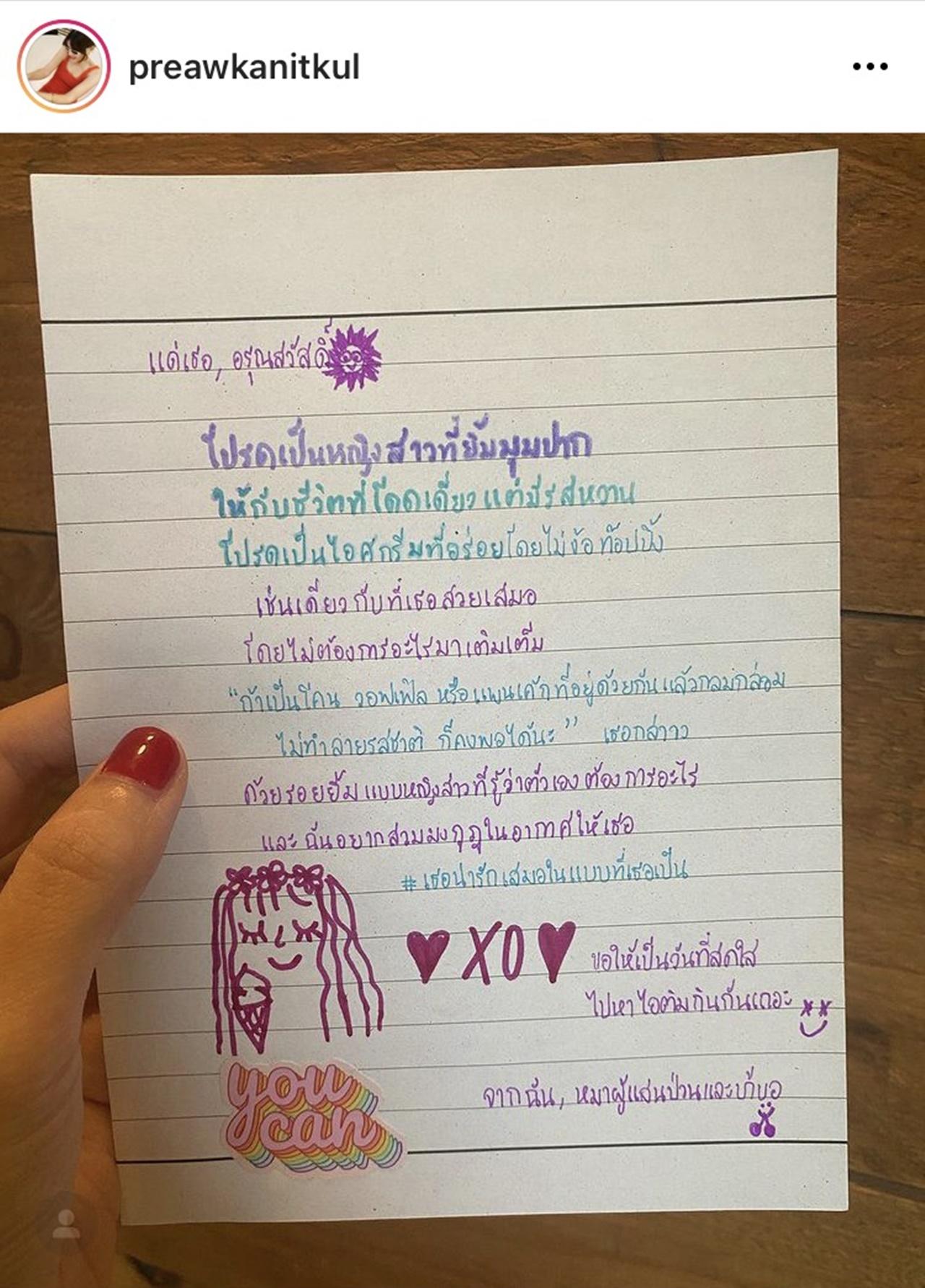 นักร้องสาว แพรว คณิตกุล เขียนเล่าประสบการณ์ที่เคยโดนบูลลี่มาตั้งแต่อายุ 12 จนกลายมาเป็นคนที่แข็งแกร่งในวันนี้ โดย แพรว ได้เขียนเล่าเรื่องราวนี้ผ่านอินสตาแกรม และเจ้าตัวได้โพสต์ภาพจดหมายจากเพื่อน ที่เขียนให้กำลังใจ เธอน่ารักเสมอในแบบที่เธอเป็น