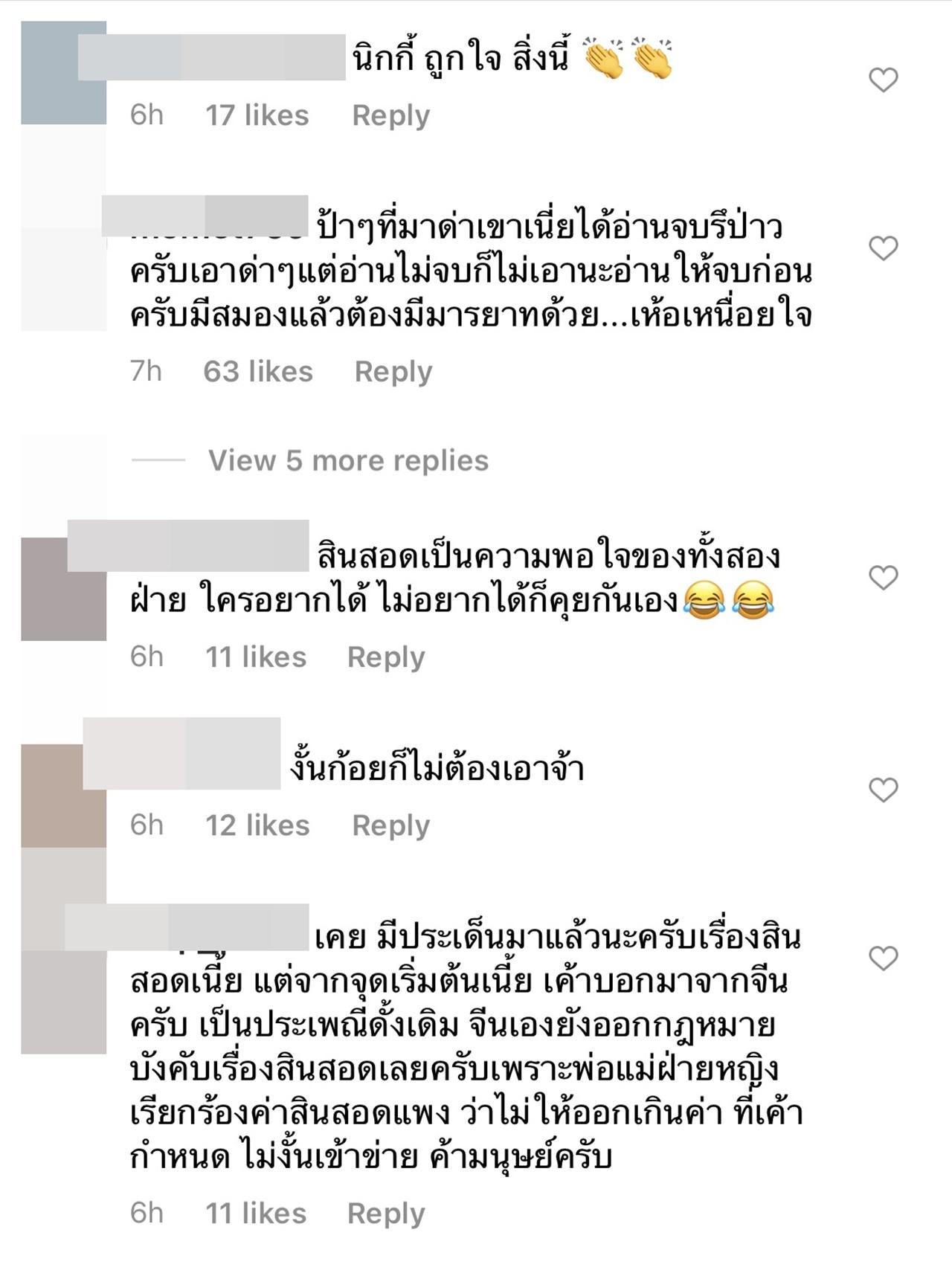 หลังจากที่กลายเป็นข่าวไป งานนี้เลยทำให้มีชาวเน็ตเข้ามาคอมเมนต์แสดงความคิดเห็นในเรื่องสินสอดกันอีกมากมาย ซึ่งก็มีคนที่เข้ามาอธิบายเรื่องสินสอด และคนที่ไม่เห็นด้วยกับการจ่ายสินสอด