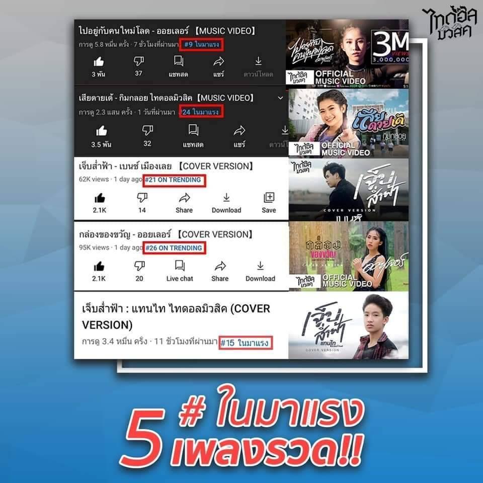 นาทีนี้แรงไม่หยุดฉุดไม่อยู่ สำหรับค่าย “ไทดอล มิวสิค” ไม่พูดถึงศิลปินในค่ายนี้คงไม่ได้แล้ว หลังจากเปิดตัวค่ายได้ไม่นาน ครองใจแฟนคลับไปเต็มๆ อะไรมันจะโดนใจขนาดนั้น 2 เดือนที่ผ่านมาปล่อยเพลงอะไรมาก็ปัง สร้างปรากฏการณ์วงการเพลงลูกทุ่งไอดอล ดูได้จากเทรนด์มาแรงไม่หยุด 4 ศิลปิน 5 เพลงรวด