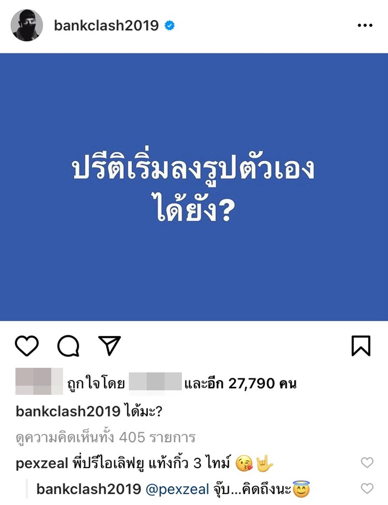 ล่าสุดเจ้าตัวก็ทำเอาแฟนๆ ฮือฮาอย่างมาก เมื่อในอินสตาแกรมของ แบงค์ ได้เริ่มโพสต์คำถามว่า "ปรีติเริ่มลงรูปตัวเองได้ยัง?" อีกทั้งยังได้โพสต์คลิปที่โยนไดร์เป่าผมลงบนเตียง และเขียนแคปชั่นว่า "ไม่เคยคิดเลยว่าวันนึงจะต้องใช้อุปกรณ์นี้" ซึ่งแฟนๆ ที่ติดตามก็ได้เรียกร้องให้ลงรูปให้ดูหน่อย เพราะคิดถึง ไม่ได้เห็นหน้านานมาก อีกทั้งอยากเห็น แบงค์ ไว้ผมยาว