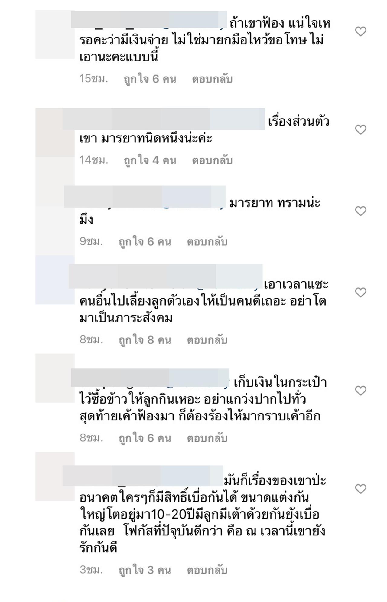 และงานนี้เลยทำให้ชาวเน็ตอีกกลุ่มได้เข้ามาคอมเมนต์ตักเตือนว่า "คิดบวกบ้างนะคะ อย่ามองโลกในแง่ร้ายมากค่ะ, ถ้ามีมารยาทไม่ควรจะเม้นแบบนี้นะคะ, ถ้าเขาฟ้อง แน่ใจเหรอคะว่ามีเงินจ่าย ไม่ใช่มายกมือไหว้ขอโทษ ไม่เอานะคะแบบนี้" เรียกว่าคอมเมนต์ตอบโต้กันอย่างดุเดือดเลยทีเดียว.