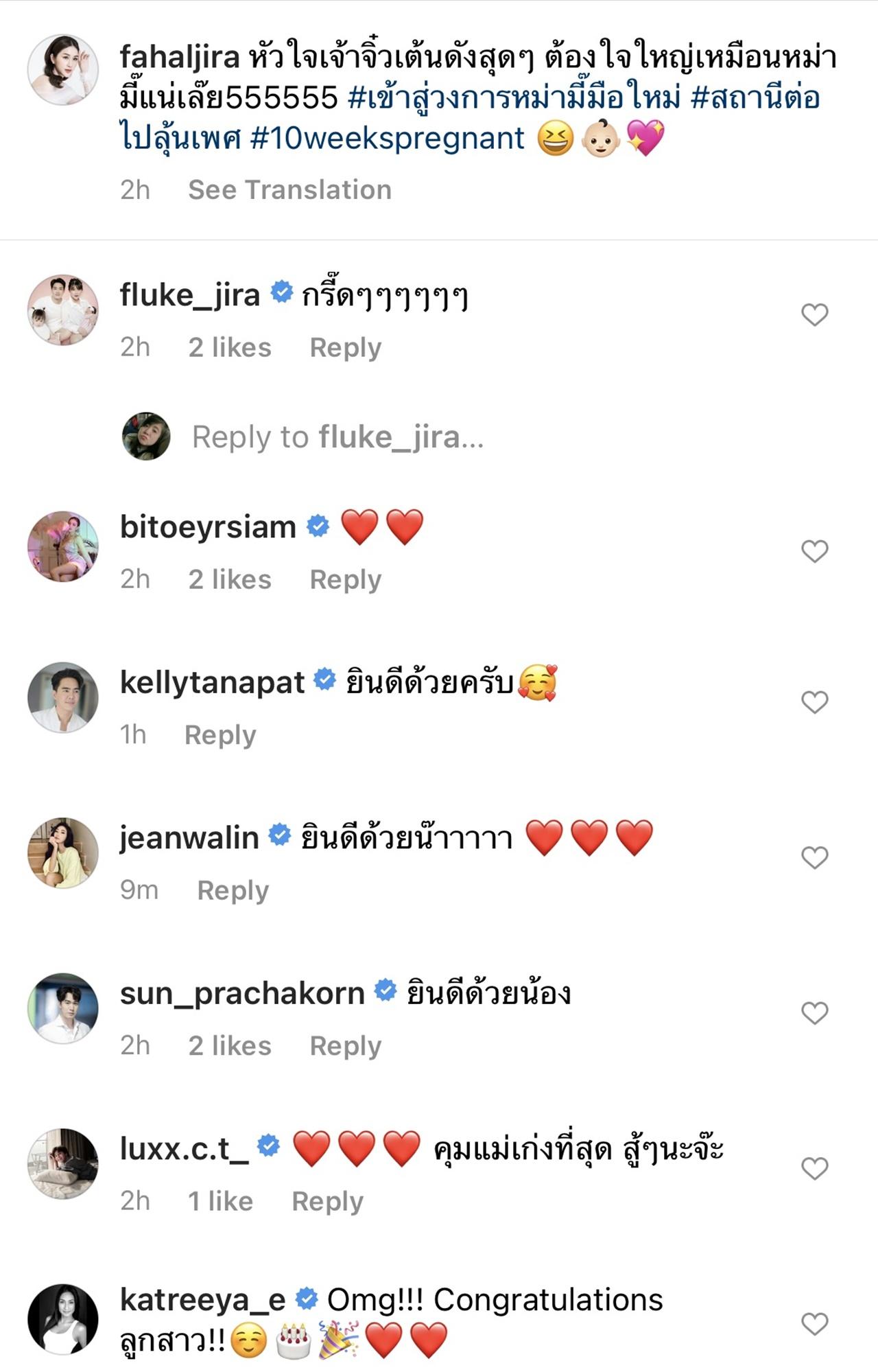 ล่าสุดนักแสดงสาวก็ประกาศข่าวดีผ่านอินสตาแกรมของตัวเองว่า “หัวใจเจ้าจิ๋วเต้นดังสุดๆ ต้องใจใหญ่เหมือนหม่ามี้แน่เล๊ย555555 #เข้าสู่วงการหม่ามื้มือใหม่ #สถานีต่อไปลุ้นเพศ #10weekspregnant”
