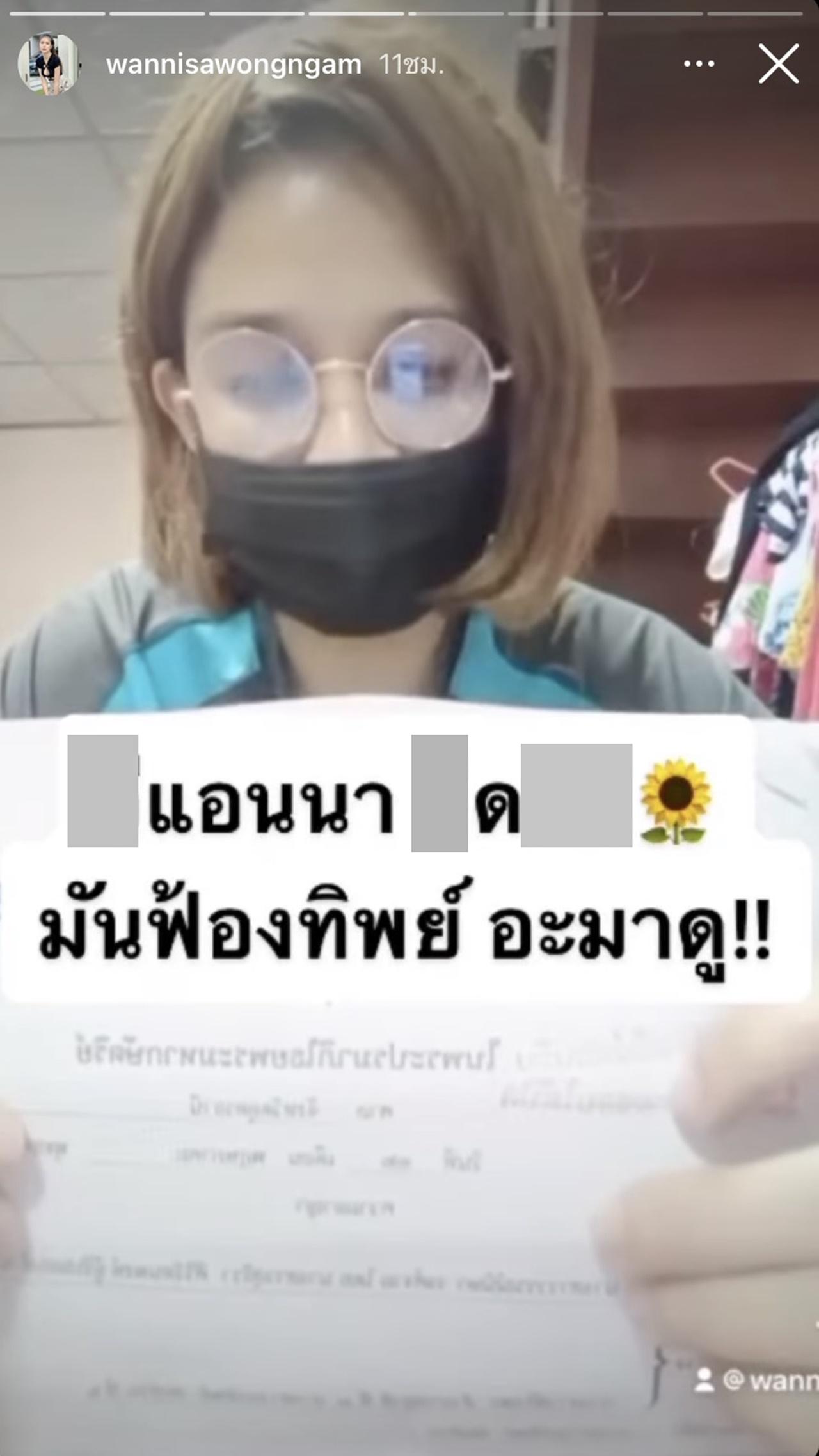 ดิฉันเห็นหลายคนเข้าไปคอมเมนต์ในคลิป และก็เข้าไปคอมเมนต์ตามคนอื่น จนได้รับหมายศาลจากจังหวัดอุดรธานี ในข้อหาคดีหมิ่นประมาทโฆษณา และดิฉันได้ติดต่อกลับไปทางทนายคุณแอนนา และได้ติดต่อคุณแอนนา ได้พูดคุยกับเหตุการณ์ที่เกิดขึ้น