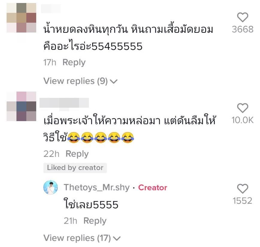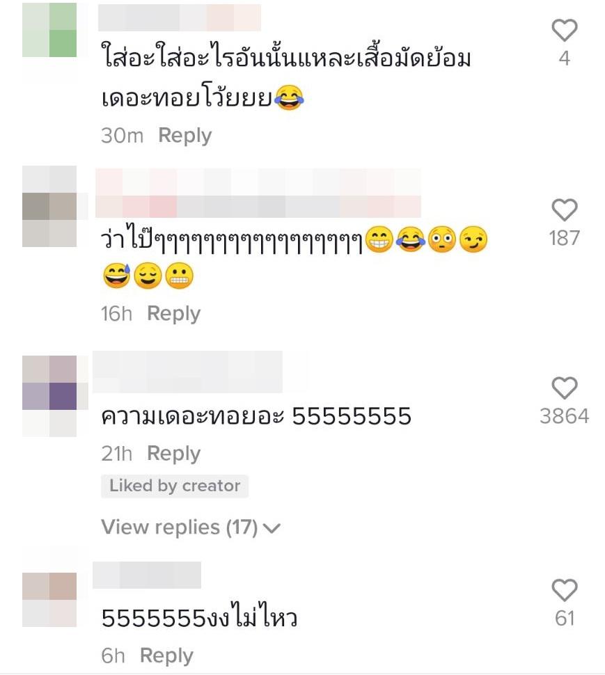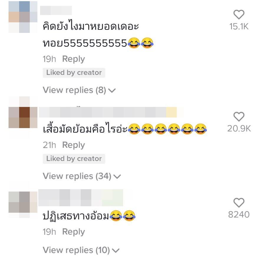 ท่ามกลางคอมเมนต์แซวจากชาวเน็ตหลายข้อความ อาทิ คิดยังไงมาหยอดเดอะทอย 55555555555, น้ำหยดลงหินทุกวัน หินถามเสื้อมัดย้อมคืออะไรอ่ะ 55555555, ปฏิเสธทางอ้อม, ใส่อะไรอะไรอันนั้นแหละเสื้อมัดย้อม เดอะทอยโว้ยยย ฯลฯ