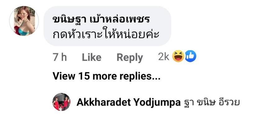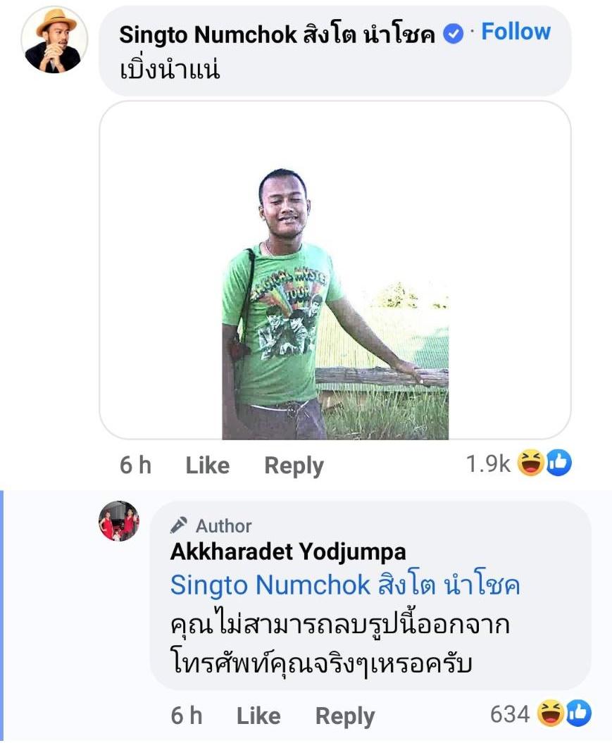 ด้าน สิงโต นำโชค ก็เข้ามาคอมเมนต์บอกว่า “เบิ่งนำแน่” พร้อมทั้งโพสต์ภาพตัวเอง ก่อนที่ก้อง ห้วยไร่ ตอบกลับว่า “คุณไม่สามารถลบรูปนี้ออกจากโทรศัพท์คุณจริงๆ เหรอครับ” ส่วน เบล ขนิษฐา ศรีภรรยาของก้อง บอกว่า “กดหัวเราะให้หน่อยค่ะ” และก้องตอบกลับว่า “อีรวย”