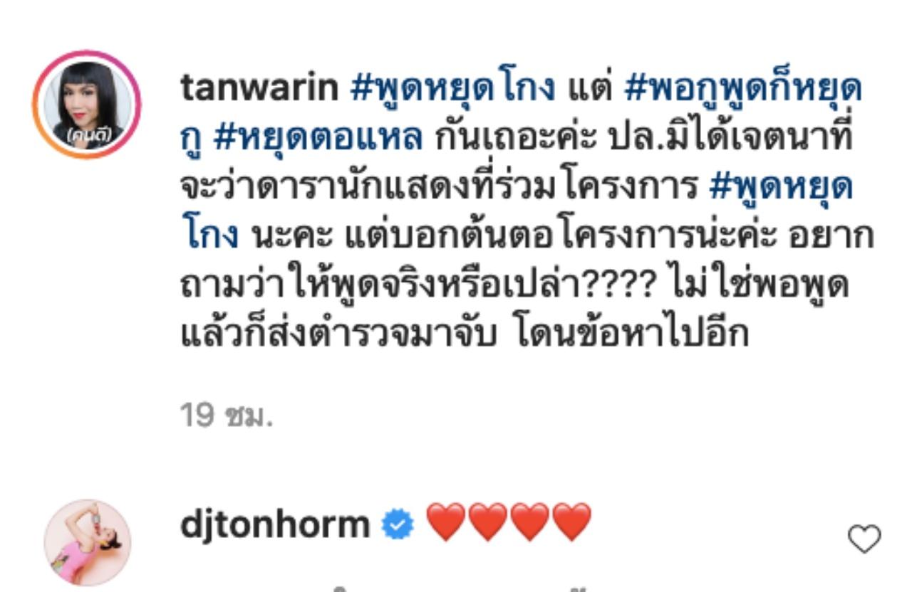โดยหลังจากกอล์ฟได้โพสต์ไปแล้ว ดีเจต้นหอม ศกุนตลา เทียนไพโรจน์ ได้มาเมนต์รูปหัวใจแดงหลายดวงให้ด้วย.