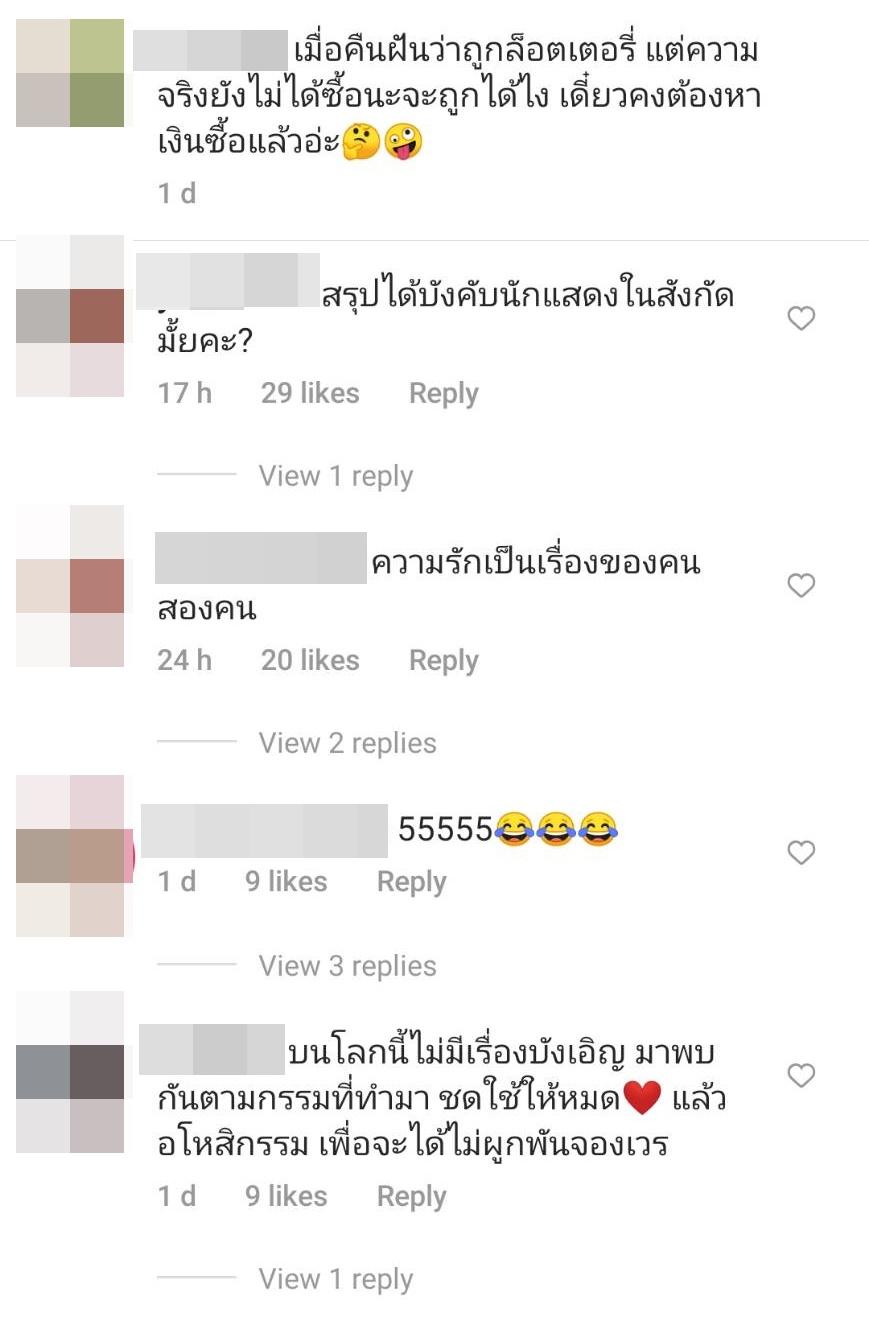 แต่แล้วก็มีคอมเมนต์ดราม่าจากชาวเน็ตหลายข้อความ อาทิ สรุปได้บังคับนักแสดงในสังกัดมั้ยคะ?, ความรักเป็นเรื่องของคนสองคน, หวังว่าคงไม่ได้แอบชอบมิกค์เองโน๊ะ, ขอให้สงสารหัวใจรักของเด็กทั้งคู่ถ้ายังมีจิตเมตตาอยู่จริง #เรื่องของความรักมันบังคับกันไม่ได้ #แต่บาปกรรมที่เราได้พรากคนที่เค้ารักกันจากกัน #มันจะไปชดใช้เราในภพภูมิหน้าแน่นอน ฯลฯ