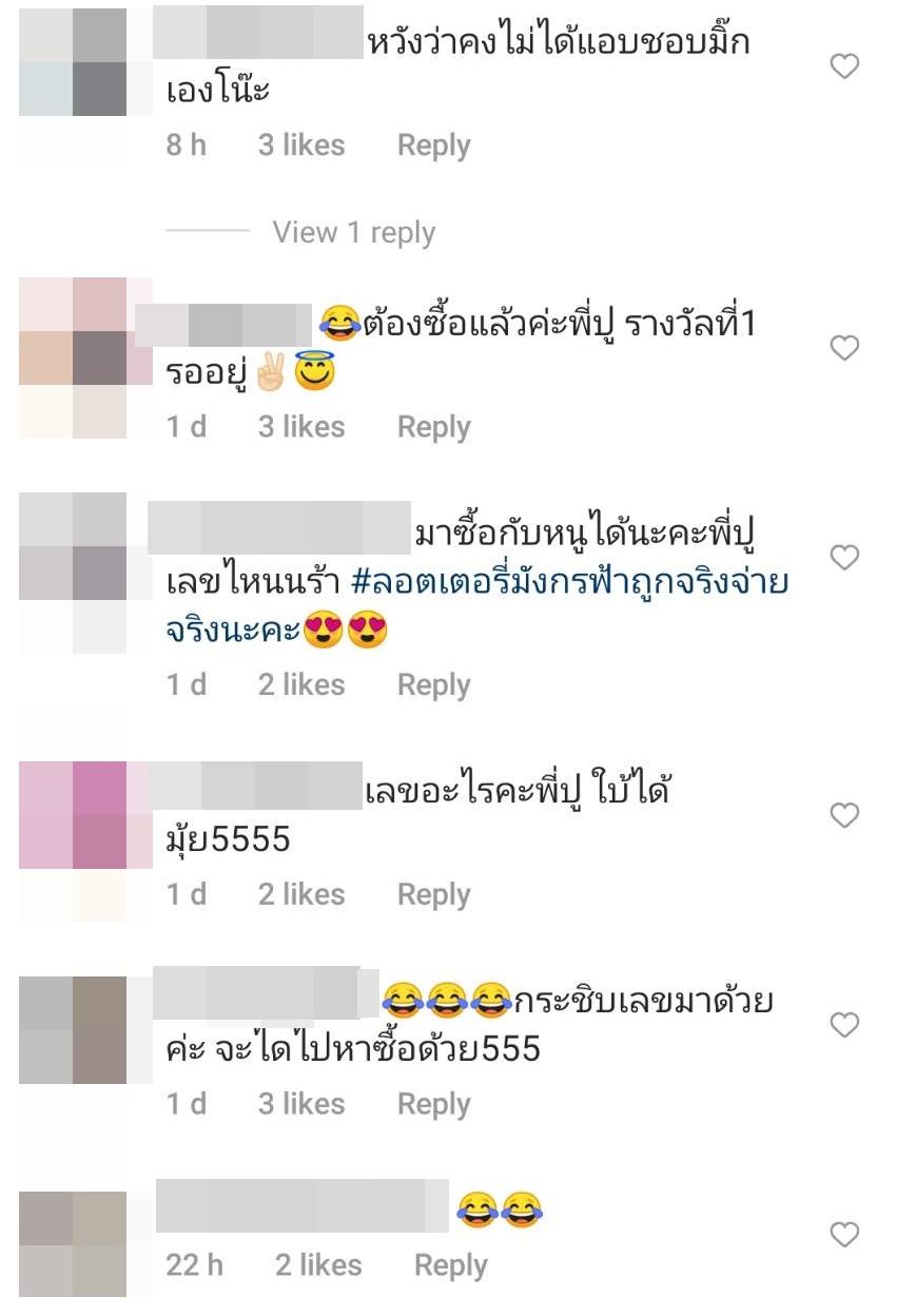 และล่าสุด ปู ผู้จัดการส่วนตัวของมิกค์ โพสต์ภาพธนบัตรกองโตลงในไอจีส่วนตัว พร้อมทั้งเขียนแคปชั่น “เมื่อคืนฝันว่าถูกลอตเตอรี่ แต่ความจริงยังไม่ได้ซื้อนะจะถูกได้ไง เดี๋ยวคงต้องหาเงินซื้อแล้วอะ” ท่ามกลางคอมเมนต์แซวจากแฟนๆ ของมิกค์ อาทิ ต้องเปลี่ยนจากแม่น้ำหนึ่งตามพี่ปูแทน, ต้องซื้อแล้วค่ะพี่ปู รางวัลที่ 1 รออยู่, กระชิบเลขมาด้วยค่ะ จะได้ไปหาซื้อด้วย 555 ฯลฯ