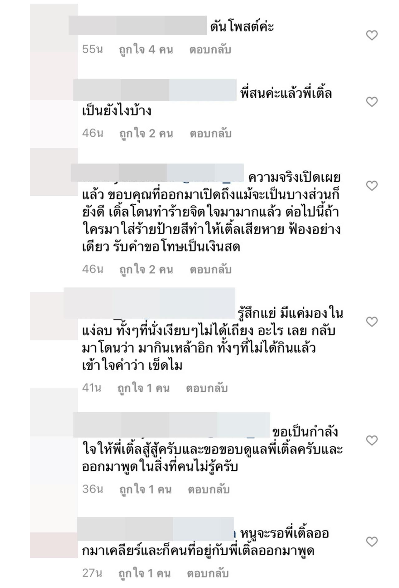 แต่ล่าสุด ในรูปที่ เติ้ล ธนพล ได้โพสต์ลงในอินสตาแกรม ก็มีคนเข้ามาคอมเมนต์แสดงความคิดเห็นต่างๆ มากมายเหมือนเดิม ที่ทั้งเสียดายไม่อยากให้ทั้งคู่เลิกกัน หรือเชียร์ให้ต่างฝ่ายต่างไปหาใหม่ และให้กำลังใจทั้งคู่ในเรื่องนี้