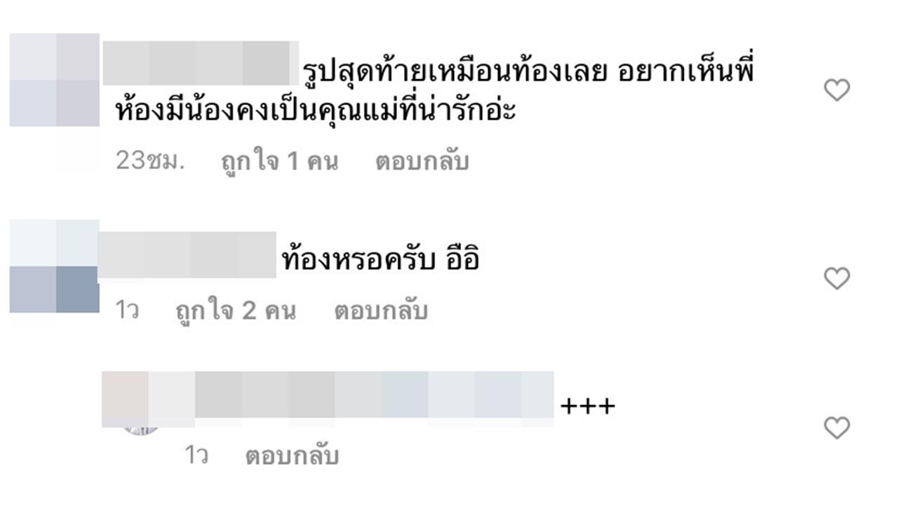 ซึ่งก็มีแฟนๆ เข้ามากดไลค์และคอมเมนต์แซวในความแซ่บของหญิงแย้มากมาย แต่ก็มีชาวเน็ตอีกบางคนที่คอมเมนต์ถามหญิงแย้ตรงๆ ไม่อ้อมค้อมว่า "ท้องหรอครับ อิอิ, รูปสุดท้ายเหมือนท้องเลย อยากเห็นพี่ห้องมีน้องคงเป็นคุณแม่ที่น่ารักอ่ะ"