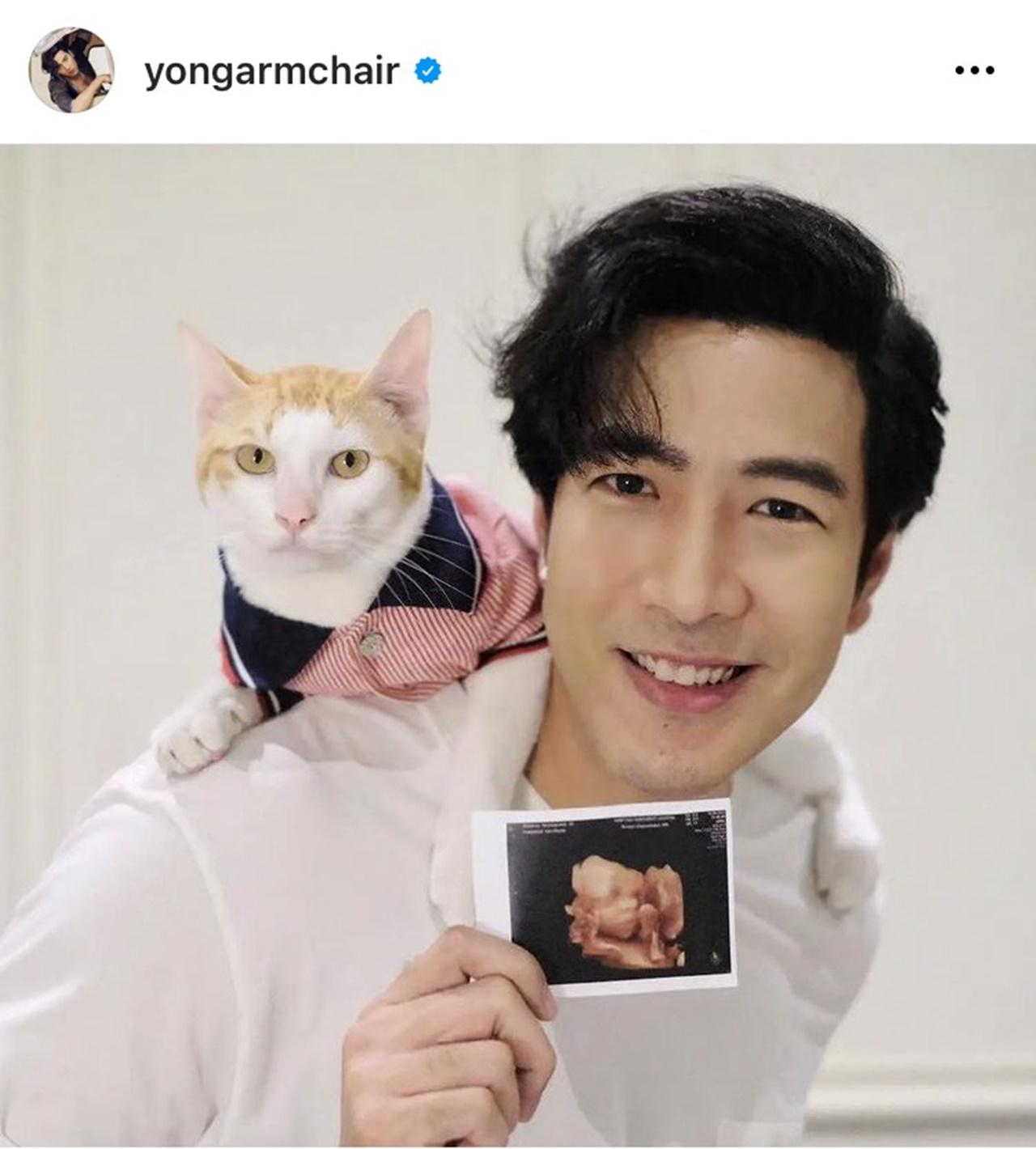 โดย โย่ง ได้โพสต์ภาพอัลตราซาวนด์ลูกในท้องของภรรยา พร้อมมีเจ้าแมว ส้มหยุด นั่งบ่นบ่า พร้อมเขียนข้อความเฉลยเพศลูก ว่าได้ลูกสาว และส้มหยุดกำลังจะได้เป็นพี่ชายแล้ว