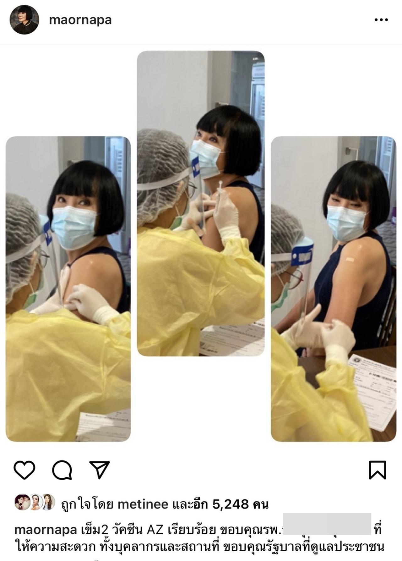 และล่าสุด ม้า อรนภา ก็ได้ออกมาโพสต์ผ่านอินสตาแกรมส่วนตัวพร้อมกับเผยภาพว่าได้ฉีดวัคซีนเข็มที่ 2 เป็นที่เรียบร้อยแล้วพร้อมแคปชั่นว่า