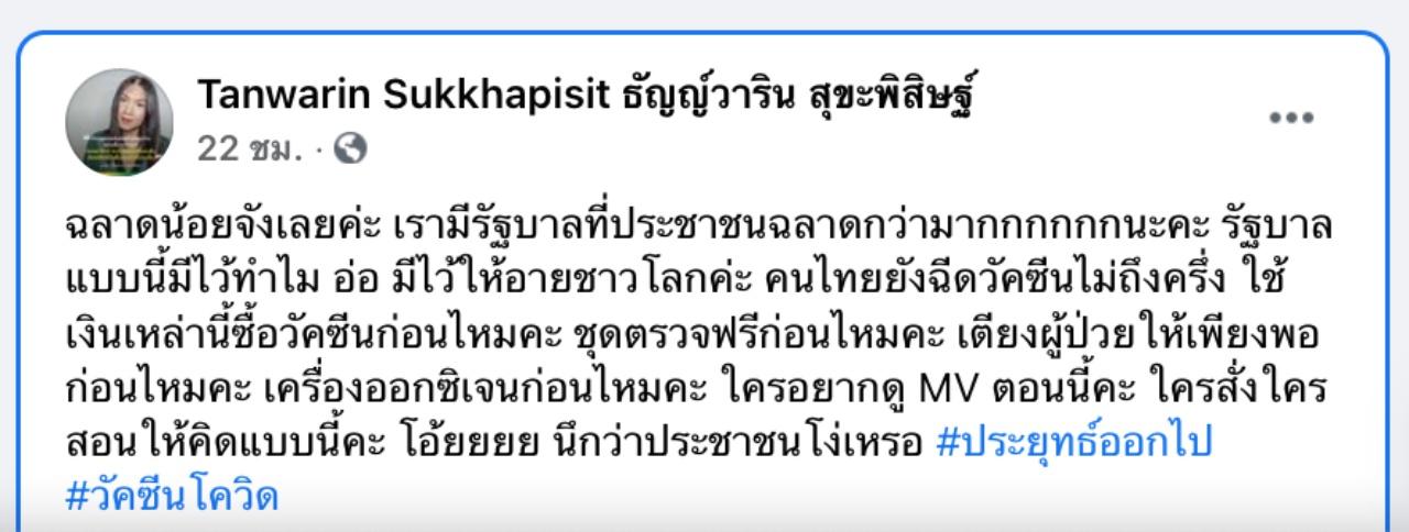 ผู้กำกับหนังดัง ละครปัง ซีรีส์เด่นหลายเรื่อง กอล์ฟ ธัญญ์วาริน สุขะพิสิษฐ์ โพสต์ตรงๆ ที่เฟซบุ๊ก Tanwarin Sukkhapisit ธัญญ์วาริน สุขะพิสิษฐ์ ตั้งข้อสังเกตตรงๆ น่าคิดมากๆ เกี่ยวกับโครงการนี้ ที่จะต้องใช้เงินไปหลายร้อยล้านบาท แทนที่จะนำมาแก้ปัญหาโควิด ให้ถูกจุดจริงๆ
