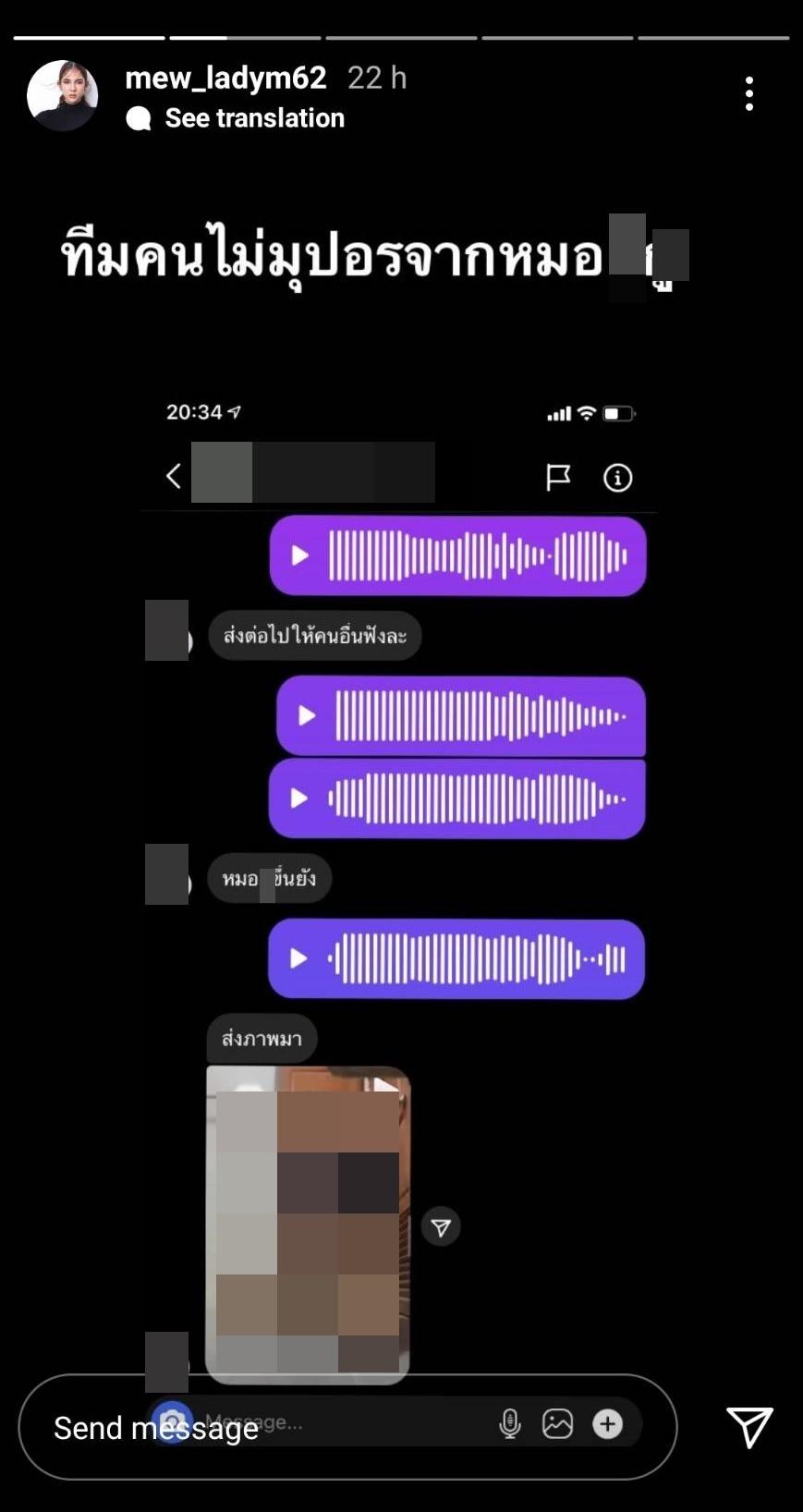 โดย หมิว สิริลภัส แคปภาพข้อความไดเรกต์ไอจีจากชายคนหนึ่งที่ส่งข้อความมาถึงหมิวในทำนองคุกคามทางเพศ อีกทั้งยังส่งคลิปวิดีโอช่วยตัวเองมาให้ ทำให้นักแสดงสาวช็อกกับสิ่งที่เกิดขึ้น โพสต์ภาพดังกล่าวลงไอจีสตอรี่ อีกทั้งยังเขียนแคปชั่นสั้นๆ ว่า “ทีมคนไม่มุปอรจาก หมอ_-ู”