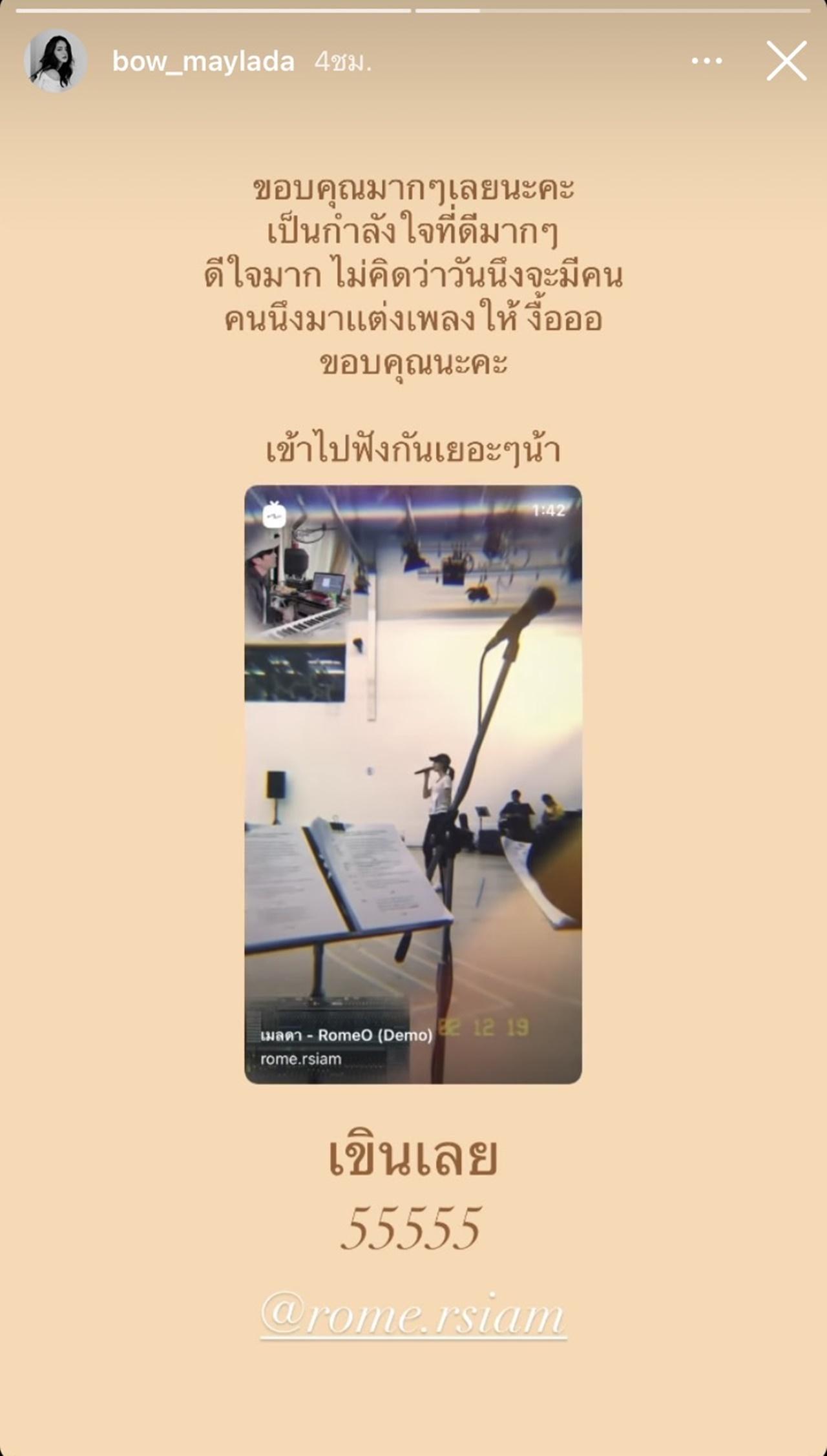"ขอบคุณมากๆ เลยนะคะ เป็นกำลังใจที่ดีมากๆ ดีใจมากๆ ไม่คิดว่าวันนึงจะมีคนคนนึงมาแต่งเพลงให้ งื้อออ ขอบคุณนะคะ เข้าไปฟังกันเยอะๆ น้า เขินเลย 555555" พร้อมกับแท็กหนุ่ม โฬม อาร์สยาม