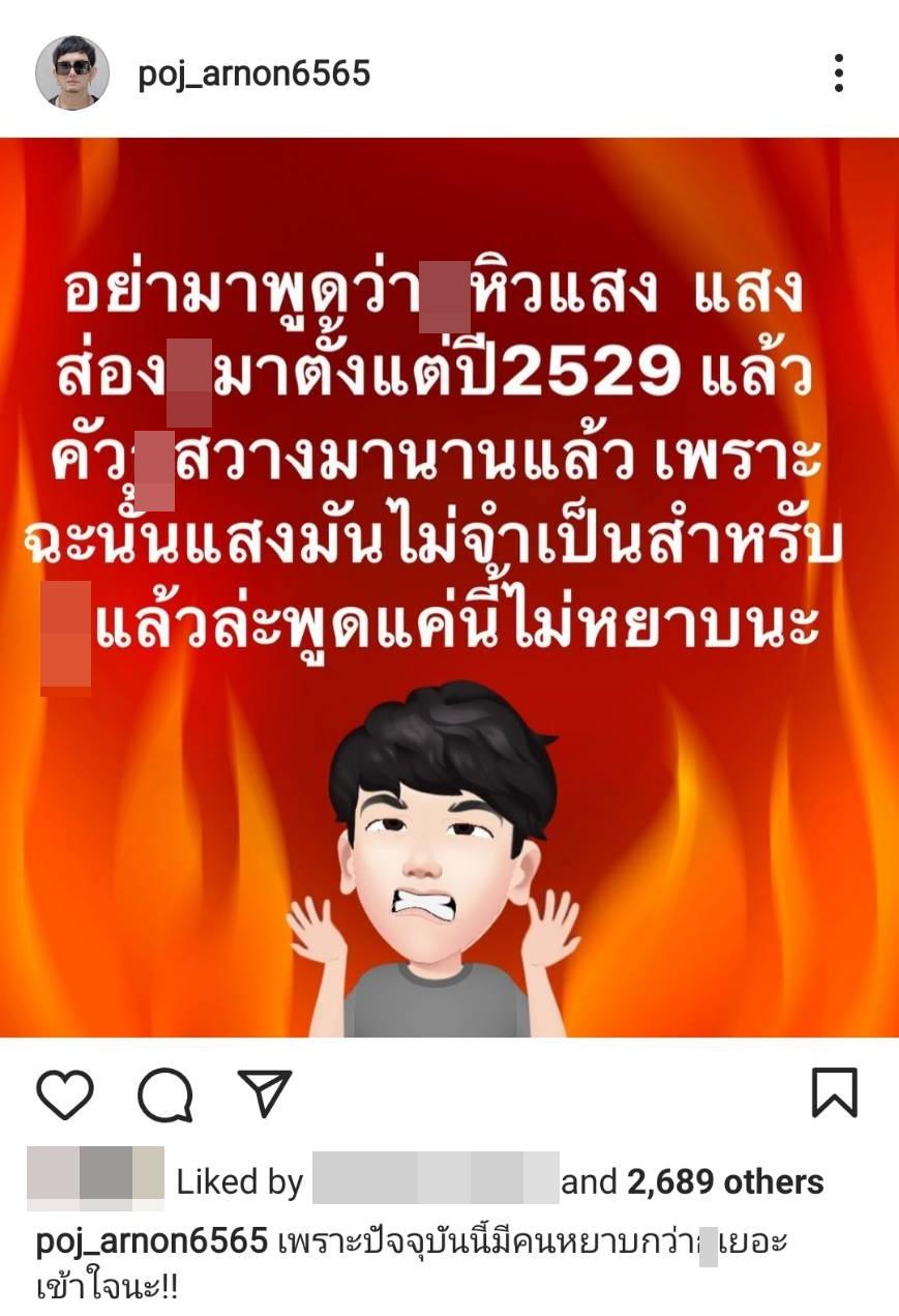 ล่าสุด พชร์ อานนท์ ก็โพสต์ภาพข้อความเดือดฟาดกลับชาวเน็ตที่เข้ามาวิจารณ์ว่า “อย่ามาพูดว่า-ูหิวแสง แสงส่อง-ูมาตั้งแต่ปี 2529 แล้ว ตัว-ูสว่างมานานแล้ว เพราะฉะนั้นแสงมันไม่จำเป็นสำหรับ-ูแล้วล่ะ พูดแค่นี้ไม่หยาบนะ” พร้อมทั้งเขียนแคปชั่น “เพราะปัจจุบันนี้มีคนหยาบกว่า-ูเยอะ เข้าใจนะ!!”.