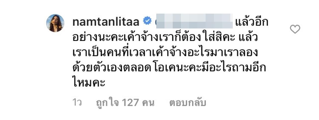 ล่าสุด น้ำตาล ก็ได้ลงภาพหลังจากที่เธอรับรีวิวสินค้าชนิดหนึ่ง แต่งานนี้กลับมีคนเข้ามาแซะว่า สินค้าที่ น้ำตาล ใส่อยู่นั้นเพิ่งเคยเห็นใส่ ใส่แค่เพราะเค้าจ้างรึเปล่า ซึ่งงานนี้เจ้าตัวก็ไม่รอช้า รีบตอบกลับทันที โดยบอกว่า "เค้าเพิ่งจะส่งมาให้จะให้ใส่ตอนไหนล่ะคะ ก็เพิ่งได้แล้วก็บอกนะด้วยว่าบัดดี้คู่ใจตอนนี้ แล้วอีกอย่างนะคะเค้าจ้างเราก็ต้องใส่สิคะ แล้วเราเป็นคนที่เวลาเค้าจ้างอะไรมาเราลองด้วยตัวเองตลอดโอเคนะคะมีอะไรถามอีกไหมคะ"