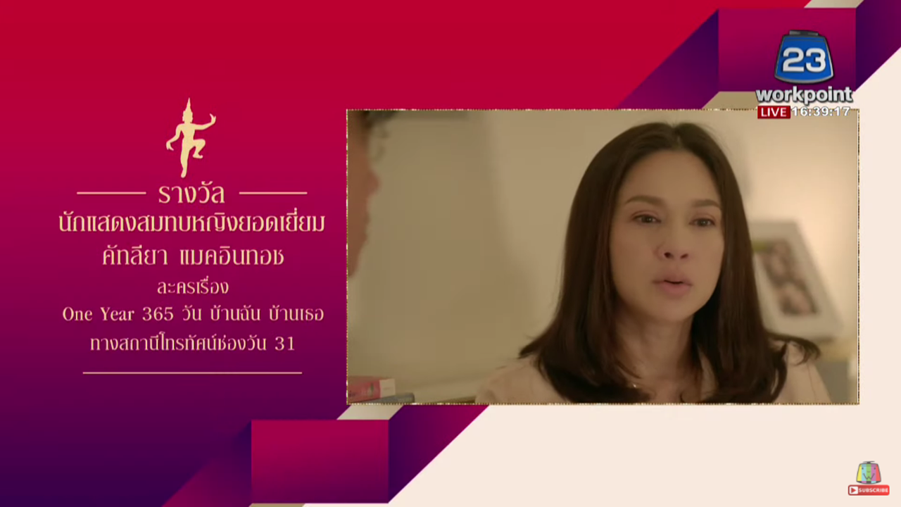 - คุณคัทลียา แมคอินทอช จาก ละครเรื่อง One Year 365 วัน บ้านฉัน บ้านเธอ ออกอากาศทางสถานีโทรทัศน์ช่องวัน 31