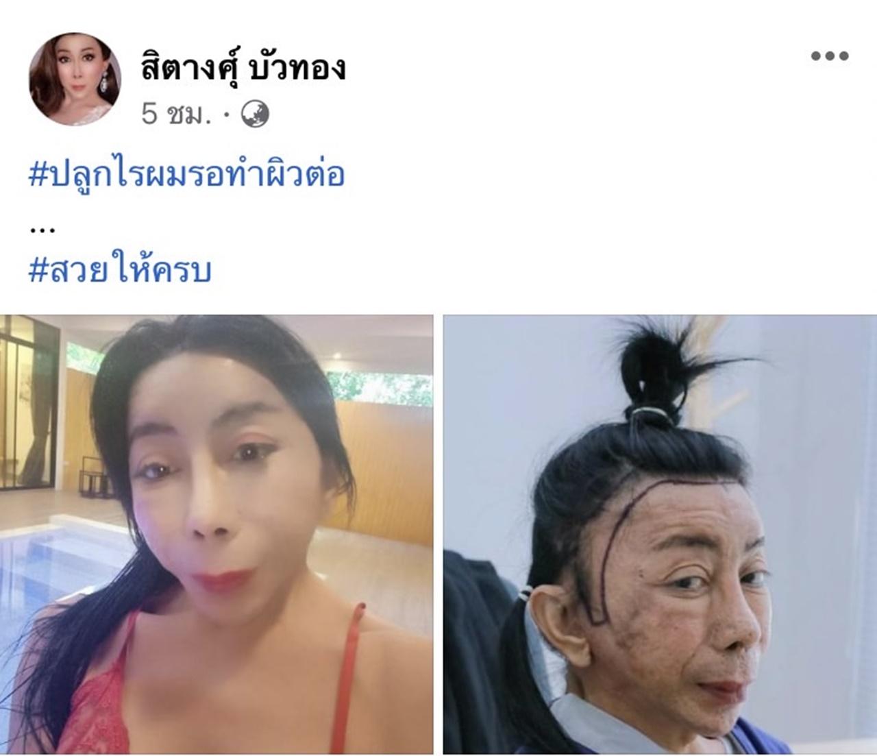 ล่าสุด แม่สิตางศุ์ ได้เผยภาพตัวเองที่ทำการปลูกผมเพิ่มความปังให้กับตัวเอง เนื่องจากผมเดิมนั้นบางมาก ต้องบอกเลยว่าจัดเต็มสุดๆ โดย แม่สิตางศุ์ ได้โพสต์ภาพผมตัวเองที่กำลังปลูกใหม่ตามกรอบหน้า พร้อมเขียนแคปชั่นว่า