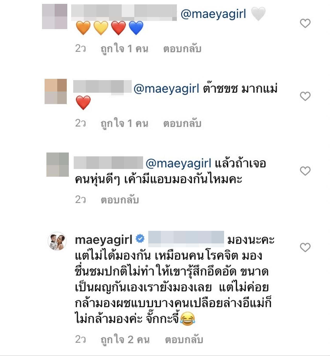 หลายคนที่ติดตามต่างเข้ามากดไลค์ให้กับความแซ่บของ แม่เมญ่า กันเป็นจำนวนมาก พร้อมกับชื่นชมในความเซ็กซี่ในหุ่นของคุณแม่ แต่ในขณะเดียวกันก็ได้มีคนเข้ามาคอมเมนต์ว่า "กล้าจัง"