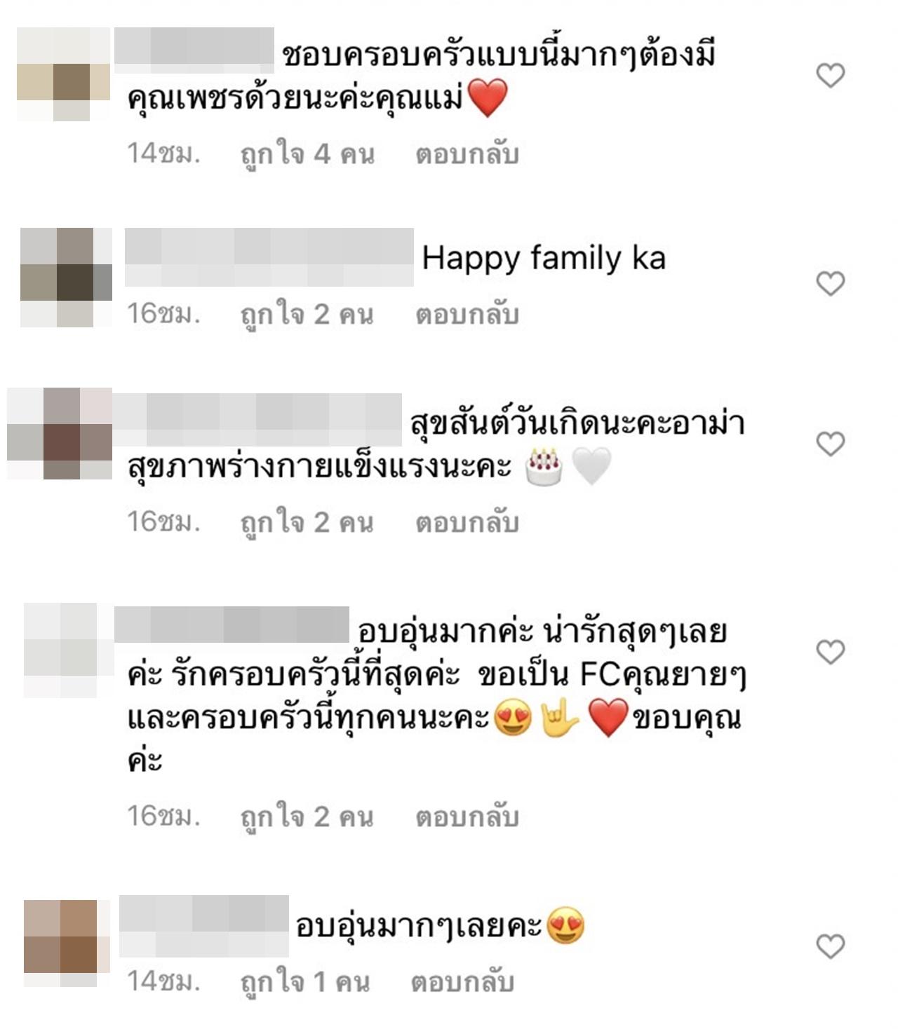 งานนี้ทำเอาแฟนคลับที่ติดตามครอบครัวนี้ ต่างเข้ามาร่วมอวยพรให้กับคุณยายของ น้องไทก้า และดีใจที่ได้เห็น เพชรจ้า อยู่กันพร้อมหน้ากับครอบครัวของ นิวเคลียร์ อีกครั้ง แม้ว่าทั้งคู่จะลดสถานะเหลือแค่เพื่อนกันก็ตาม บอกเลยว่า อบอุ่นหัวใจสุดๆ.