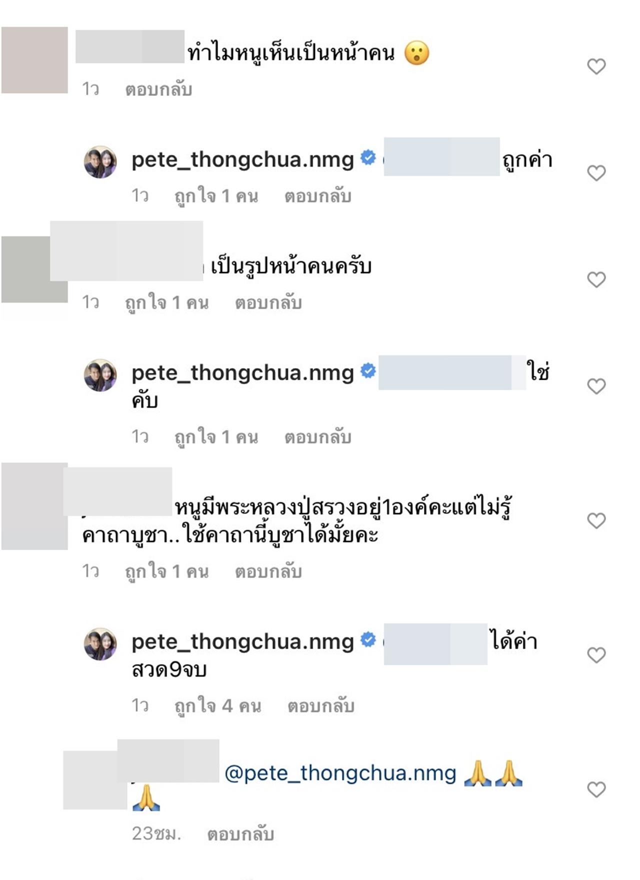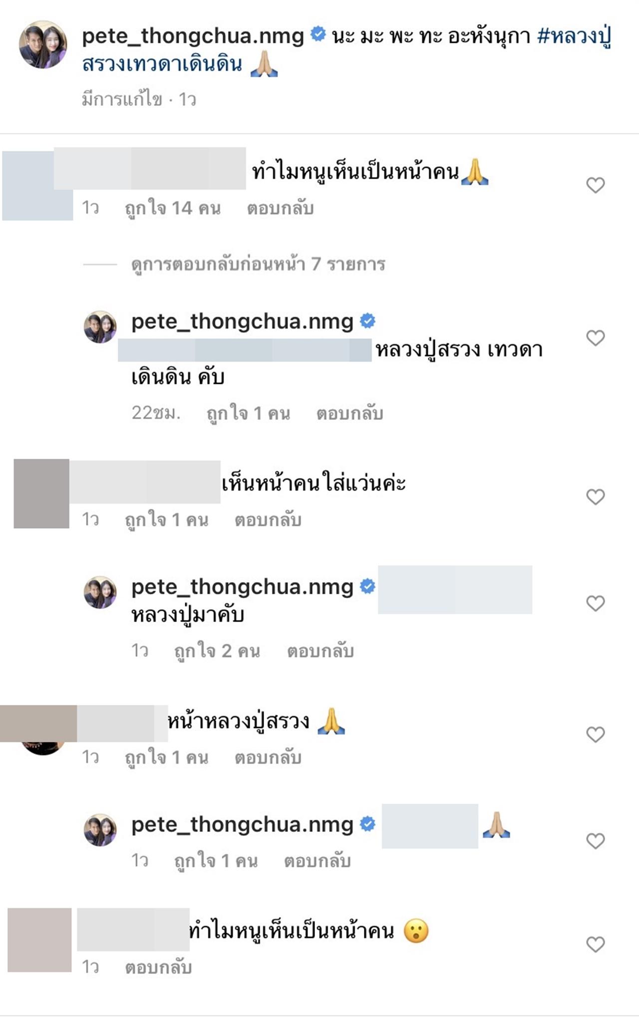 "นะ มะ พะ ทะ อะหังนุกา #หลวงปู่สรวงเทวดาเดินดิน" หลังจากที่เจ้าตัวได้โพสต์รูปดังกล่าวไป ก็มีแฟนๆ เข้ามากดไลค์และคอมเมนต์แสงความคิดเห็นไปต่างๆ นานา โดยหลายคนบอกว่าเห็นเป็นเหมือนหน้าคน ซึ่ง พีท ทองเจือ ก็ได้เข้ามาคอมเมนต์ตอบว่า "หลวงปู่มาคับ".