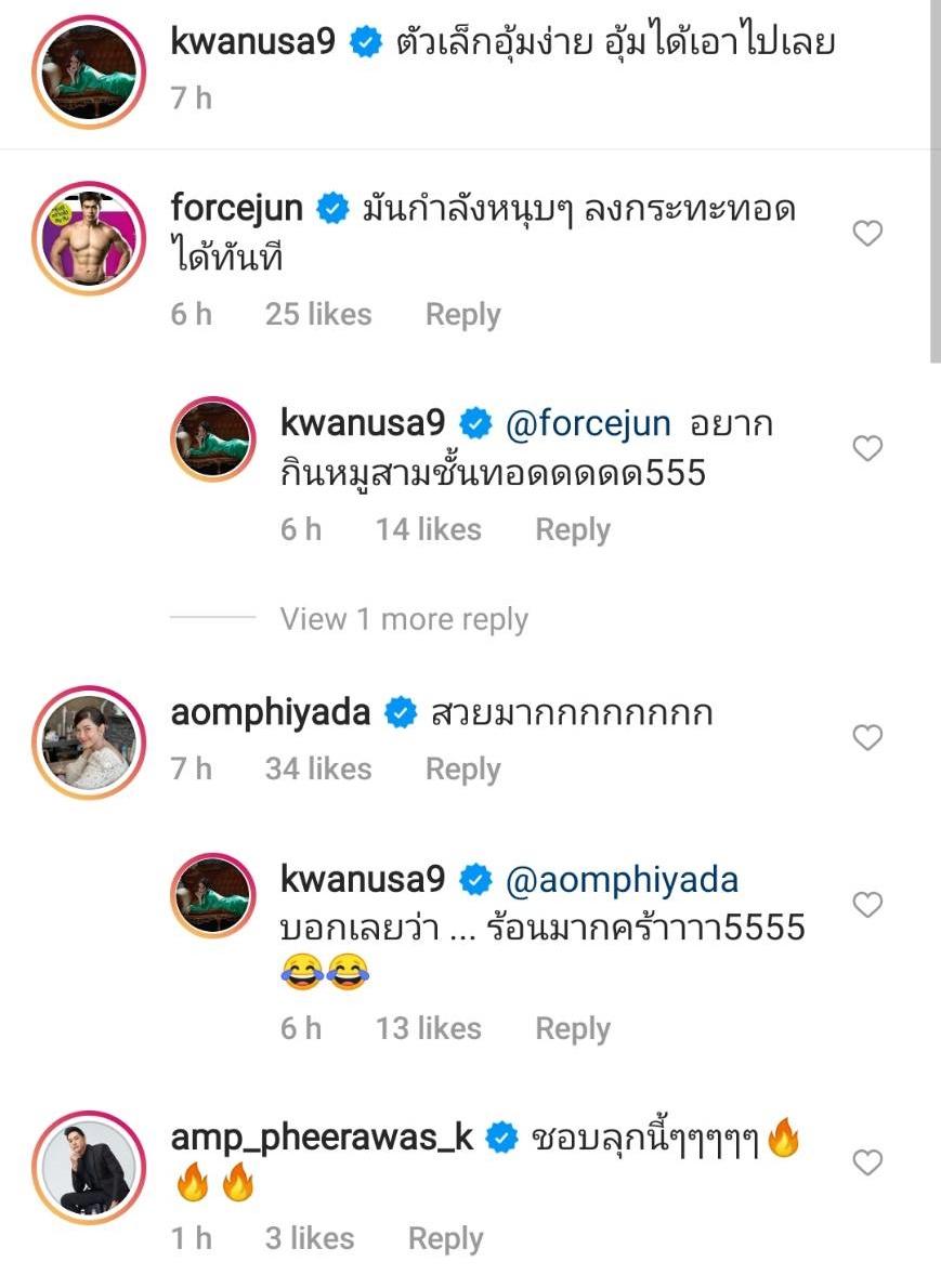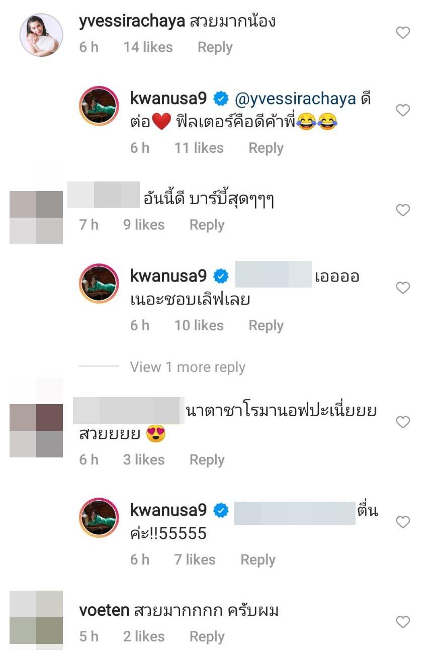 ท่ามกลางคอมเมนต์จากแฟนๆ ที่ต่างบอกว่าเหมือนตุ๊กตาบาร์บี้มากๆ ชอบลุคนี้ รวมไปถึงคนในวงการบันเทิงที่เข้ามาคอมเมนต์ อาทิ อ้อม พิยดา “สวยมากกกกกกกก”, แอมป์ พีรวัศ “ชอบลุกนี้ๆๆๆๆๆ”, อีฟ พุทธธิดา “สวยมากน้อง” ฯลฯ