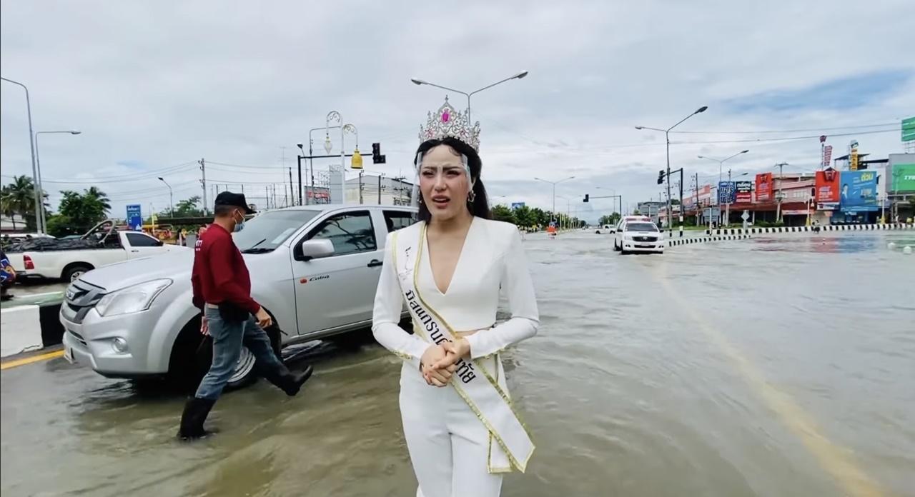 "สวัสดีค่ะ ดิฉันน้องกวาง มิสแกรนด์สุโขทัยปี 2022 อยากจะมาชี้แจงถึงกิจกรรมช่วยน้ำท่วมในวันนี้ว่า ได้รับการเชิญจากสมาคมกู้ภัยจังหวัดสุโขทัย ให้ไปมอบถุงยังชีพช่วยเหลือผู้ประสบภัยน้ำท่วม