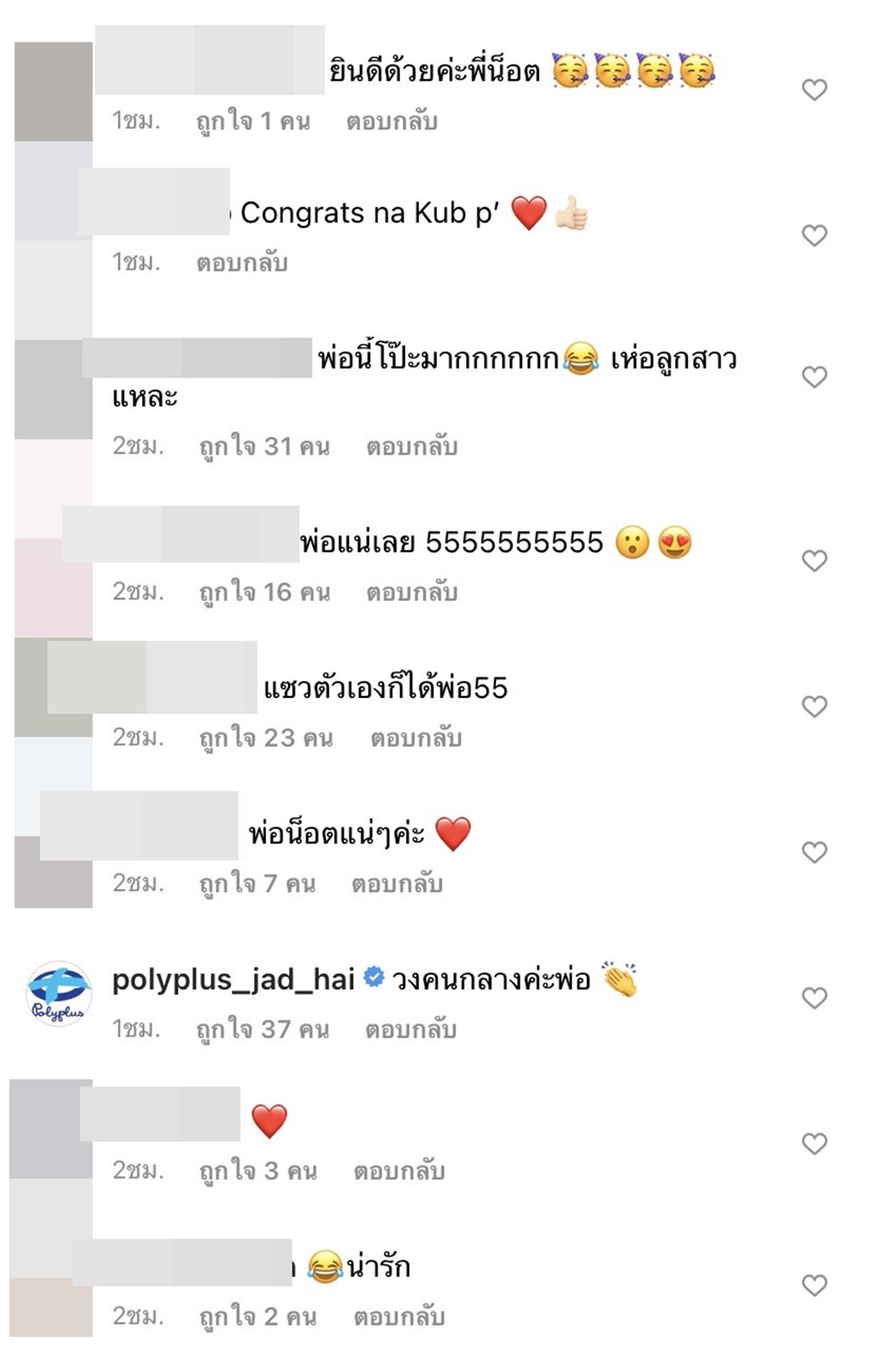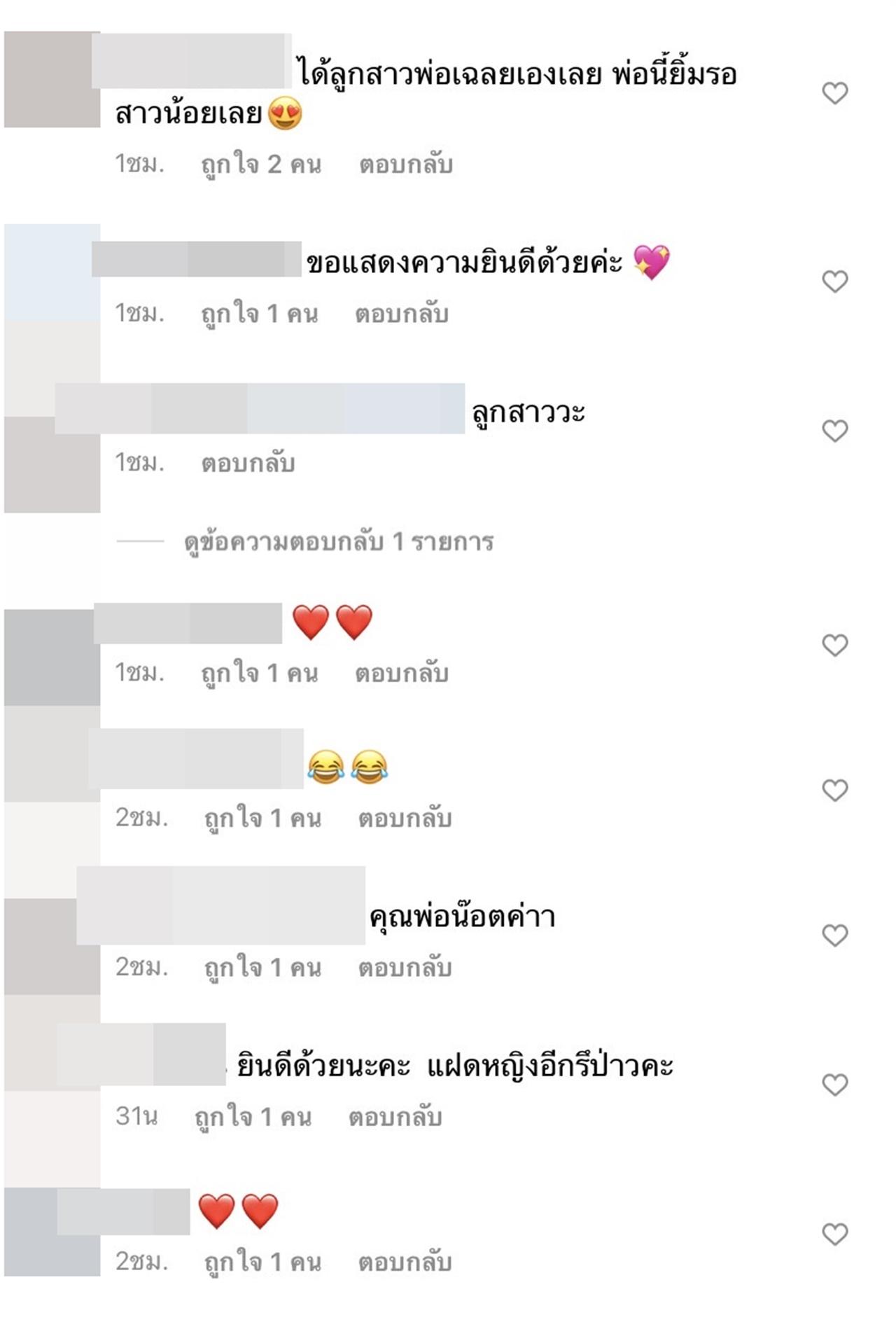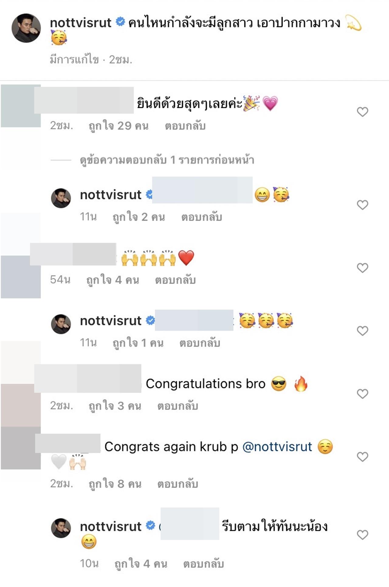 โดยพ่อน็อตเขียนแคปชั่นเอาไว้ว่า "คนไหนกำลังจะมีลูกสาว เอาปากกามาวง" พร้อมอิโมจิรูปดาว งานนี้พอว่าที่คุณพ่อลูก 3 ได้โพสต์รูปและแคปชั่นดังกล่าวไป ก็มีแฟนคลับเข้ามาคอมเมนต์แซวพ่อน็อตอย่างมากมายว่า "พ่อนี้โป๊ะมากกกกกก เห่อลูกสาวแหละ, ได้ลูกสาวพ่อเฉลยเองเลย พ่อนี้ยิ้มรอสาวน้อยเลย, คุณพ่อเฉลยแล้ว"