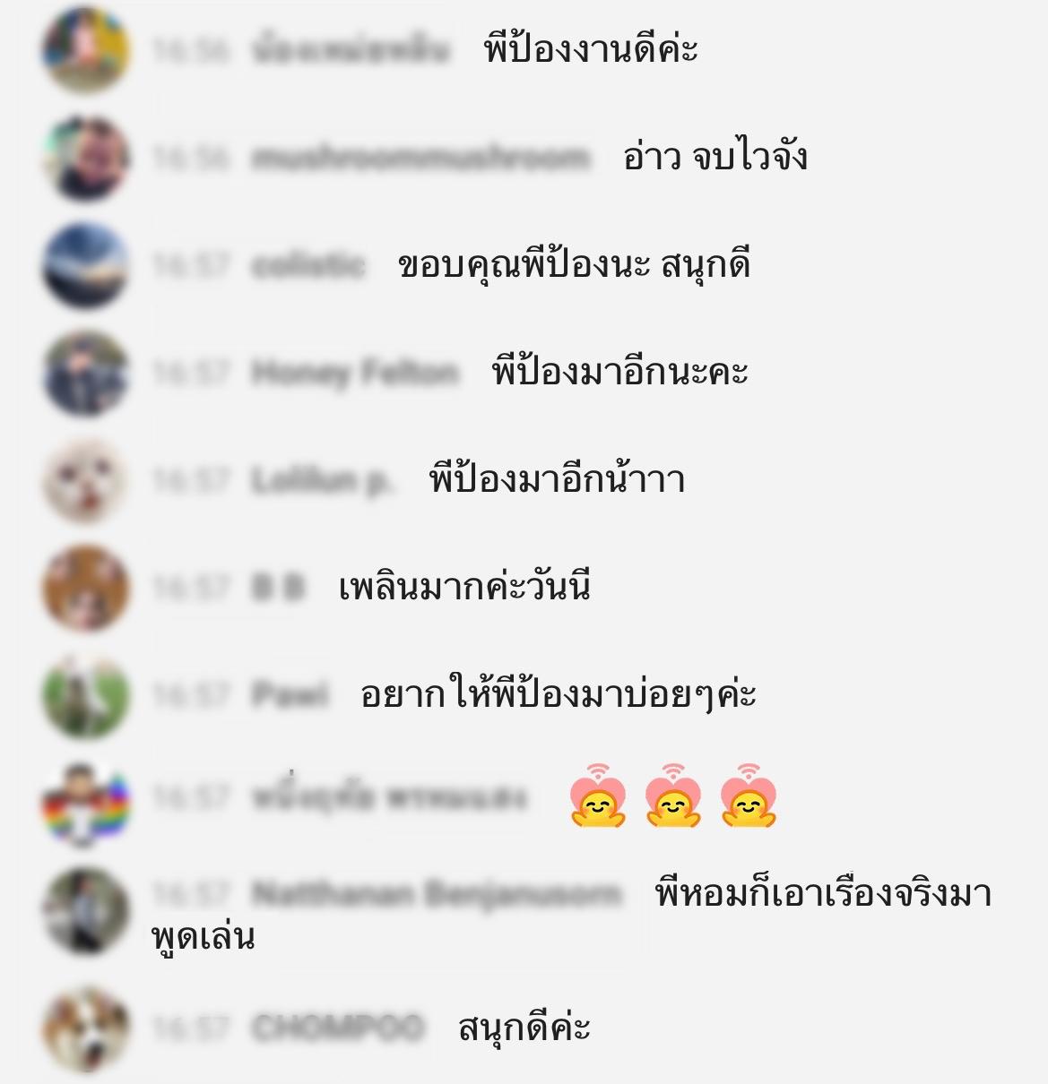 งานนี้ดีเจจำเป็นอย่าง ป้อง ณวัฒน์ ถึงกับเอ่ยปากว่า “แหม ปัญหานี้ไม่ค่อยไกลตัวผมเท่าไรเลย” เล่นเอาชาวเน็ตเมนต์กันรัวๆ ป้องถึงกับต้องรีบแก้ตัวว่า “ที่ว่าไม่ไกลตัว เพราะผมรับบทผู้ชายเจ้าชู้มาเยอะต่างหาก แต่วันนี้จะขอให้คำปรึกษาในมุมมองของผู้ชายคนนึงนะครับ”