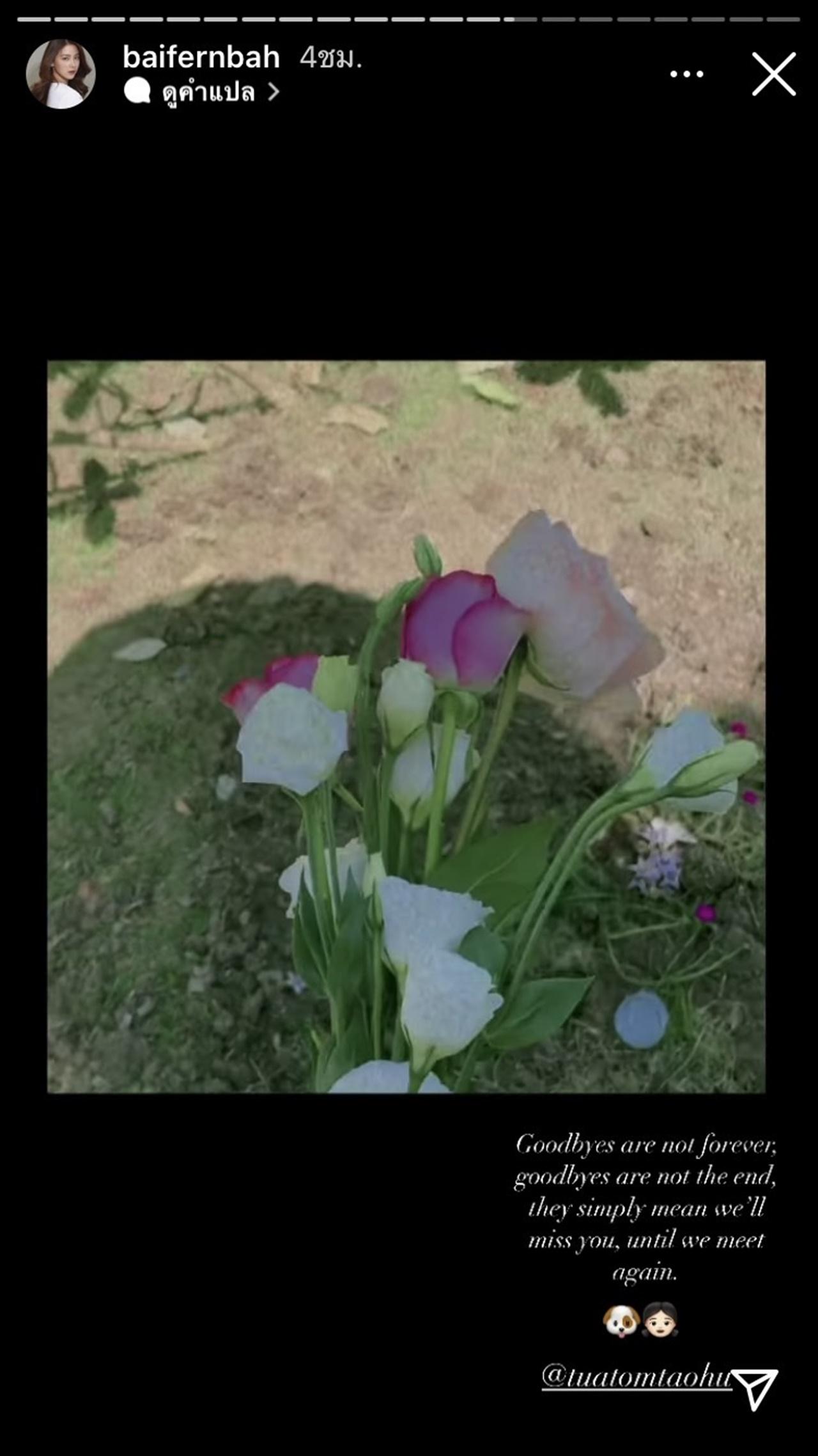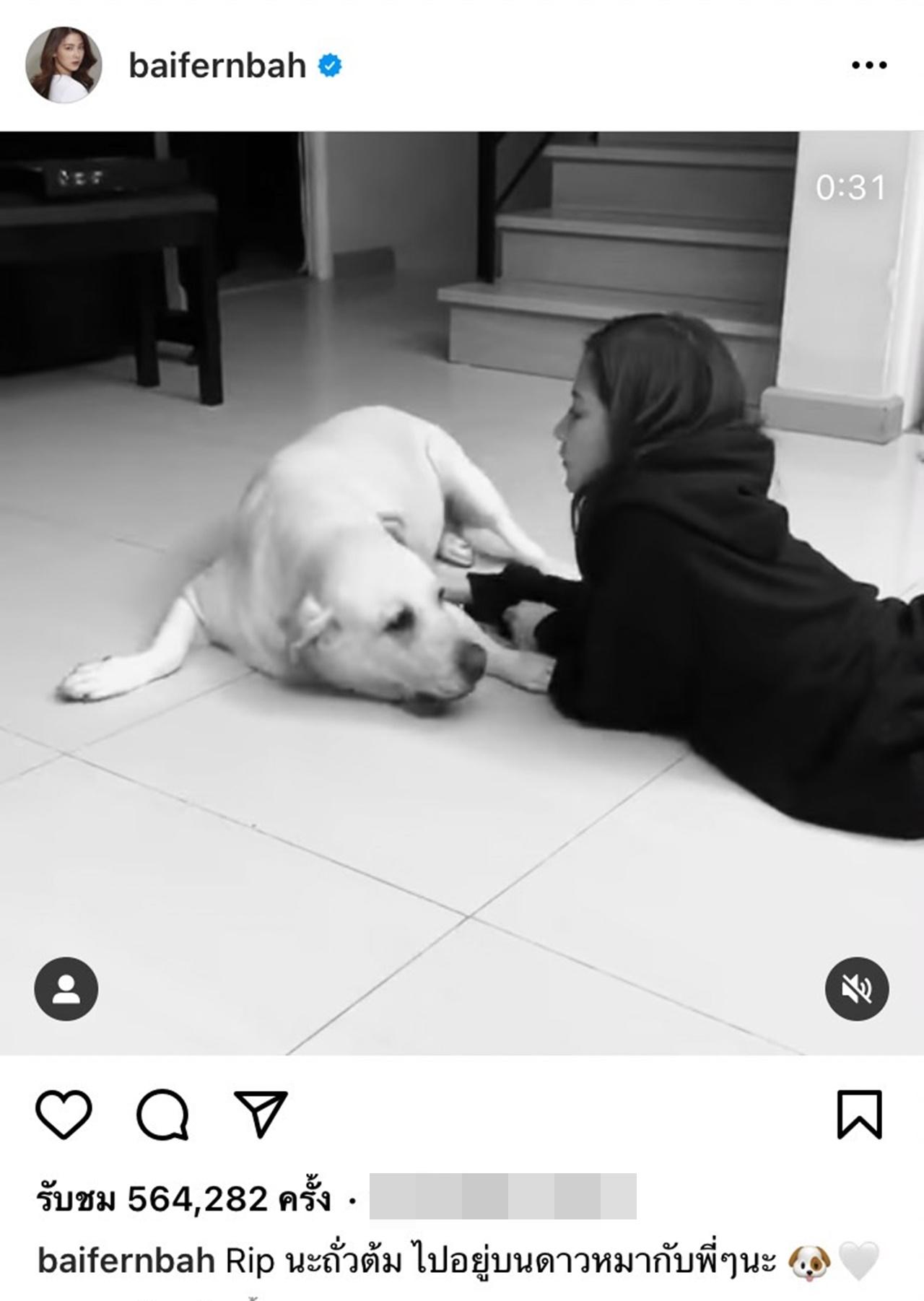 โดย ใบเฟิร์น ได้โพสต์คลิปที่เล่นกับเจ้าถั่วต้มตอนที่ยังมีชีวิต พร้อมเขียนแคปชั่นว่า "Rip นะถั่วต้ม ไปอยู่บนดาวหมากับพี่ๆ นะ"
