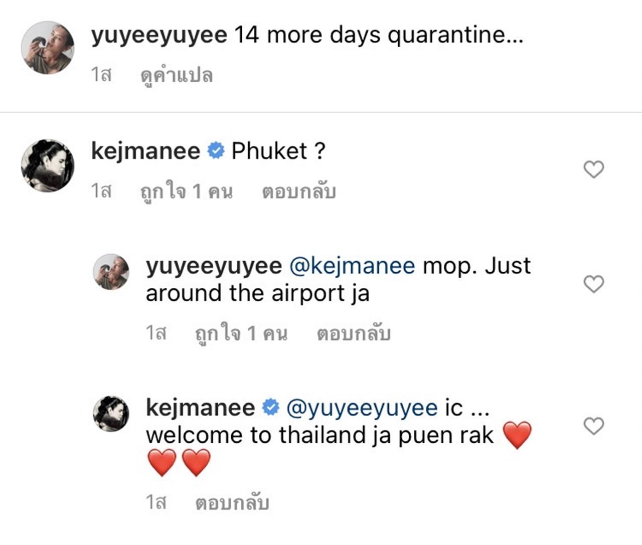 ล่าสุด ยู่ยี่ พร้อมด้วยลูกชาย ได้เดินทางกลับมาเมืองไทย เมื่อวันที่ 16 กันยายน ที่ผ่านมา พร้อมโพสต์ภาพถึงเมืองไทยแล้ว และไปกักตัวต่อที่กรุงเทพฯ เป็นเวลา 14 วัน.