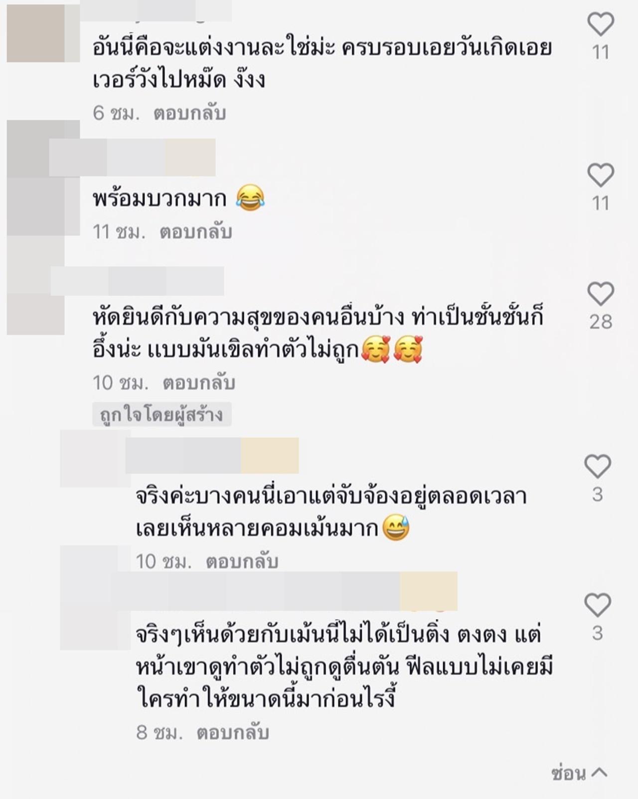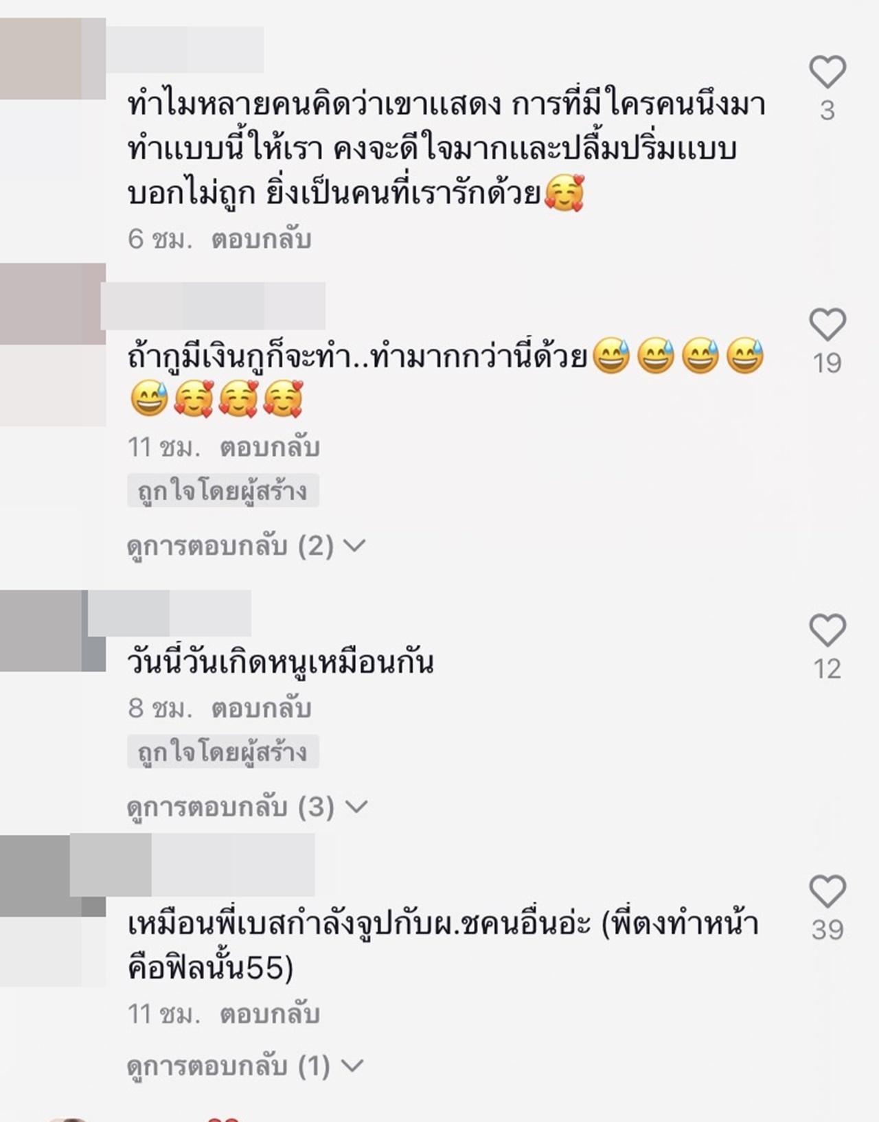 แต่งานนี้ก็มีชาวเน็ตอีกกลุ่มเข้ามาคอมเมนต์ตอบโต้แทนเบสและตงตงว่า มันคงหลายอารมณ์หลายความคิดแหละ น้องทำให้เยอะมาก ตื่นต้น มีความสุขจนล้น #ไม่จำเป็นต้องแสดง, ทำไมหลายคนคิดว่าเขาแสดง การที่มีใครคนนึงมาทำแบบนี้ให้เรา คงจะดีใจมากและปลื้มปริ่มแบบบอกไม่ถูก ยิ่งเป็นคนที่เรารักด้วย, อย่าอคติกับคนอื่นนักเลยค่ะ ควรจะเห็นด้วยกับความสุขของคนอื่นบ้างนะคะ"