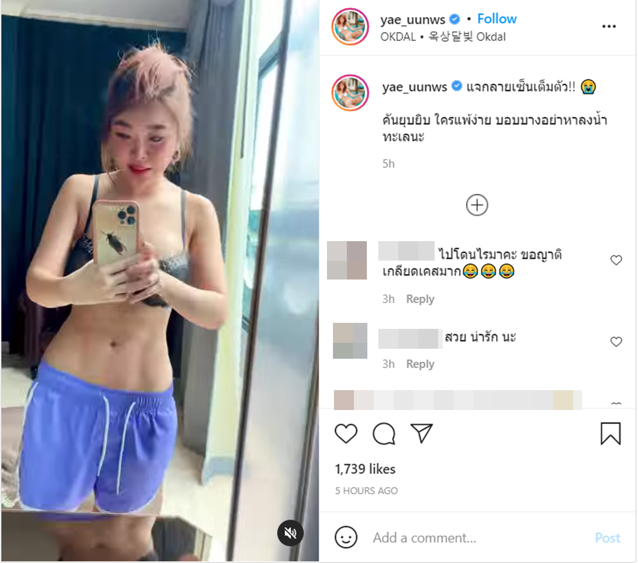โดย หญิงแย้ ได้โพสต์เตือนว่า "แจกลายเซ็นเต็มตัว!! คันยุบยิบ ใครแพ้ง่าย บอบบางอย่าหาลงน้ำทะเลนะ" หลายคนที่ติดตามได้เข้ามาคอมเมนต์แสดงความห่วงใยกันเป็นจำนวนมาก พร้อมทั้งบอกว่า มีแอบโฟกัสผิดจุดด้วย เพราะหน้าท้องของ หญิงแย้ นั้นสวยมาก.