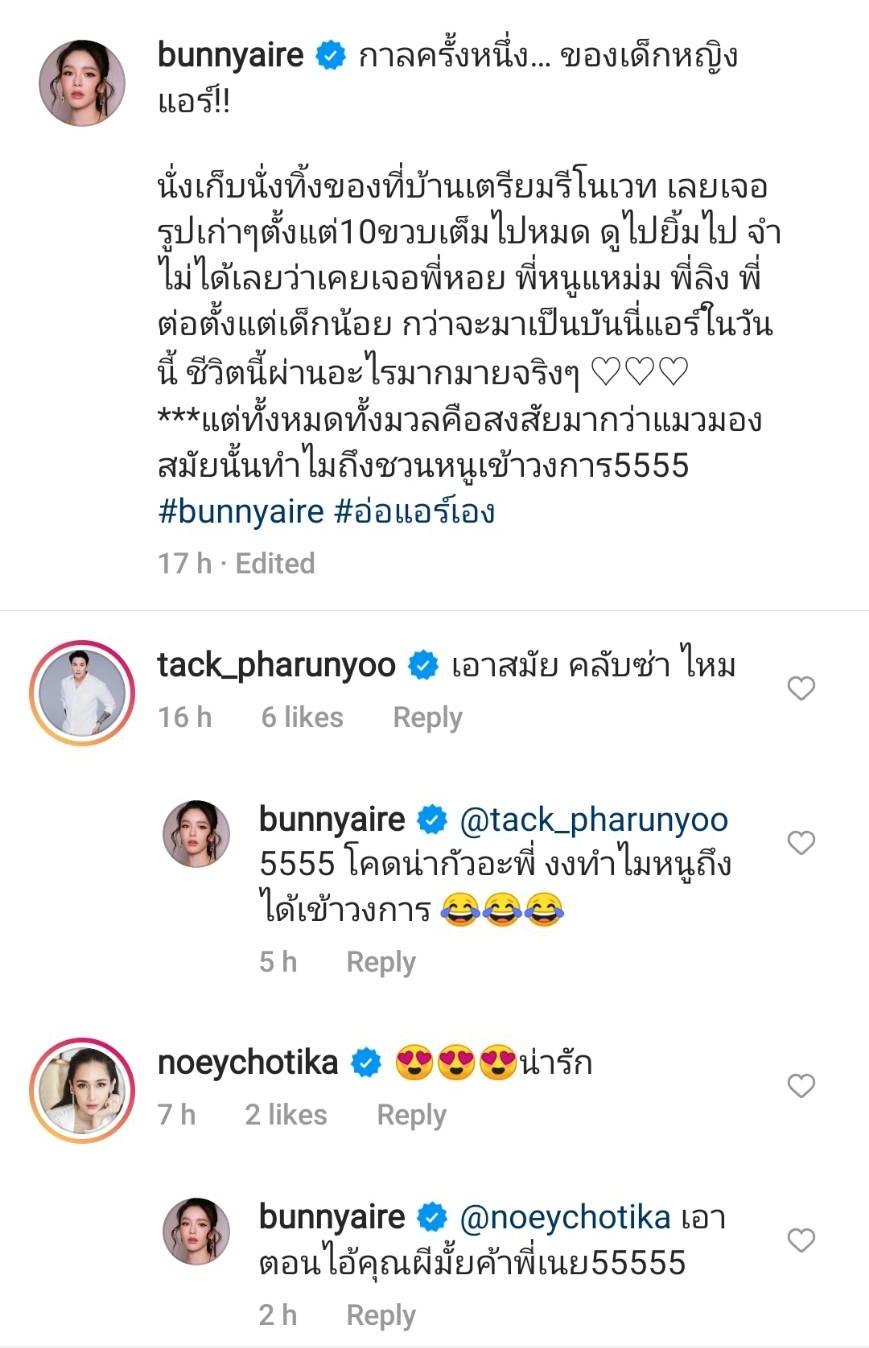 ดูไปยิ้มไป จำไม่ได้เลยว่าเคยเจอพี่หอย พี่หนูแหม่ม พี่ลิง พี่ต่อตั้งแต่เด็กน้อย กว่าจะมาเป็นบันนี่แอร์ในวันนี้ ชีวิตนี้ผ่านอะไรมากมายจริงๆ ***แต่ทั้งหมดทั้งมวลคือสงสัยมากว่าแมวมองสมัยนั้นทำไมถึงชวนหนูเข้าวงการ 5555 #bunnyaire #อ่อแอร์เอง”