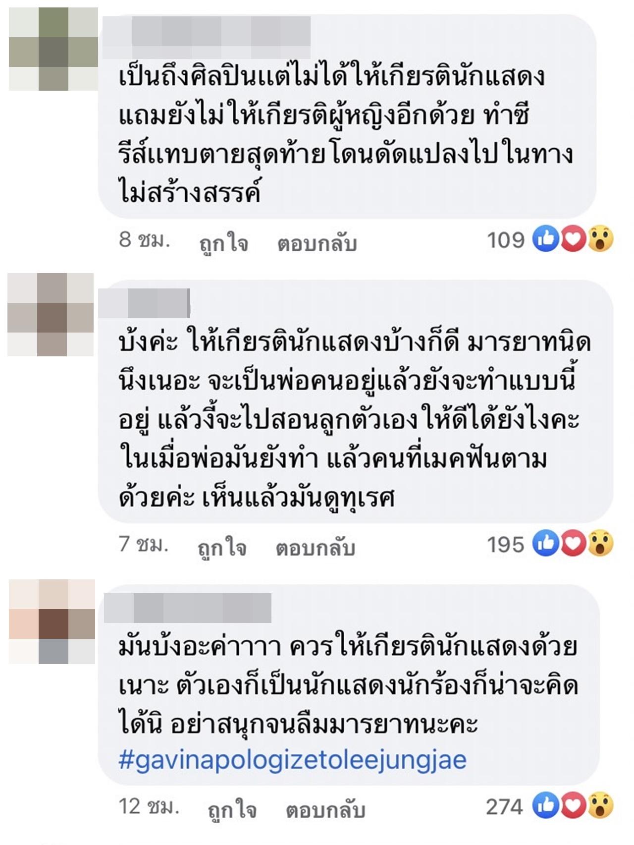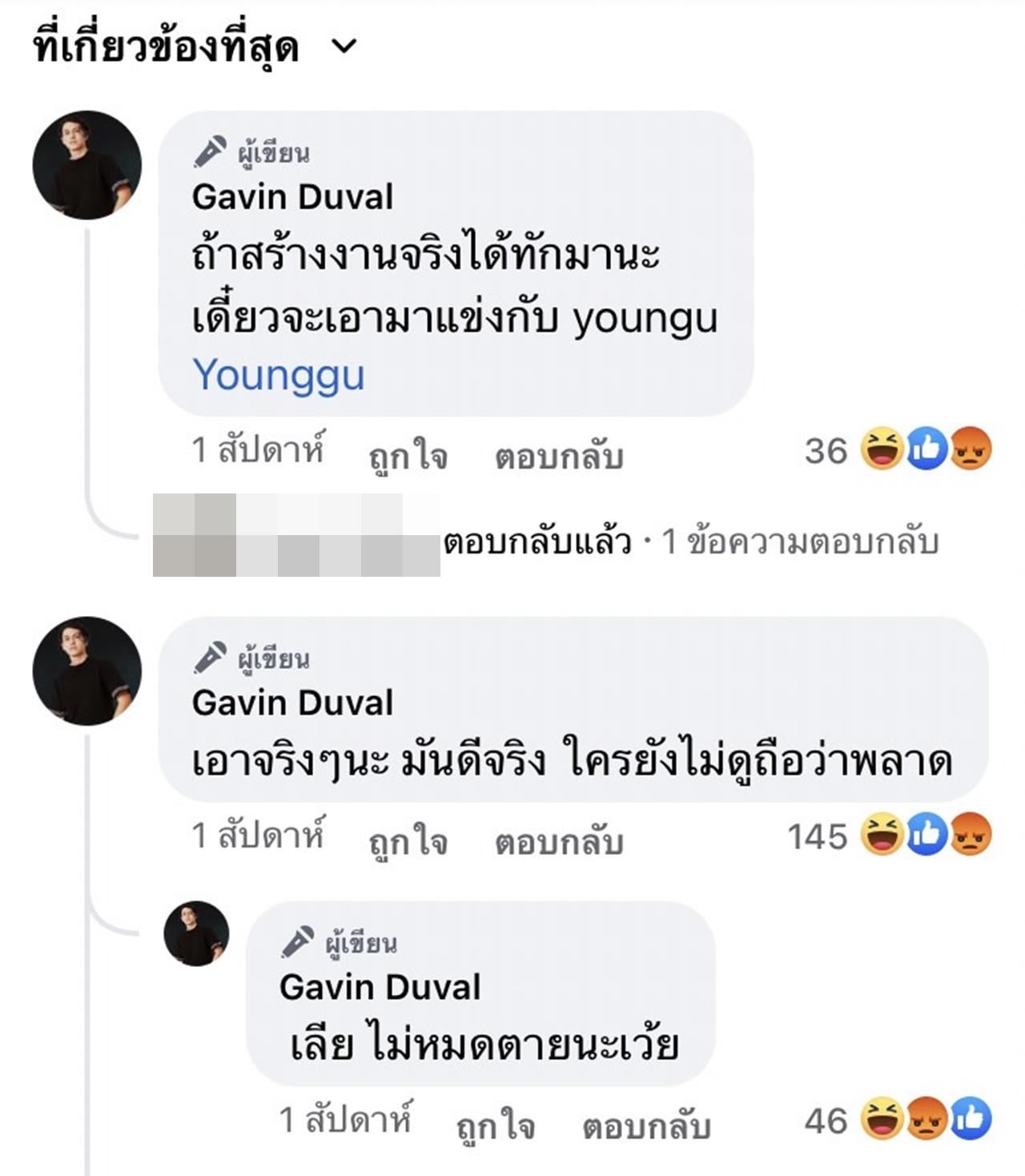 จากโพสต์ดังกล่าวทำให้ชาวเน็ตต่างไม่พอใจอย่างมาก เข้ามาวิพากษ์วิจารณ์สนั่นเพจ Gavin Duval ว่าไม่น่าโพสต์สองแง่สองง่ามแบบนี้เพราะกำลังจะเป็นพ่อคนอยู่แล้ว.