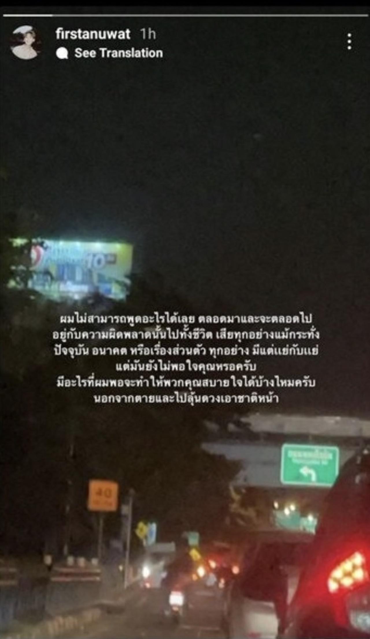 มีอะไรที่ผมพอจะทำให้พวกคุณสบายใจได้บ้างไหมครับ นอกจากตายและไปลุ้นดวงเอาชาติหน้า” ก่อนที่ข้อความดังกล่าวจะถูกลบออกไปจากไอจีสตอรี่ของนักร้องหนุ่มคนดัง