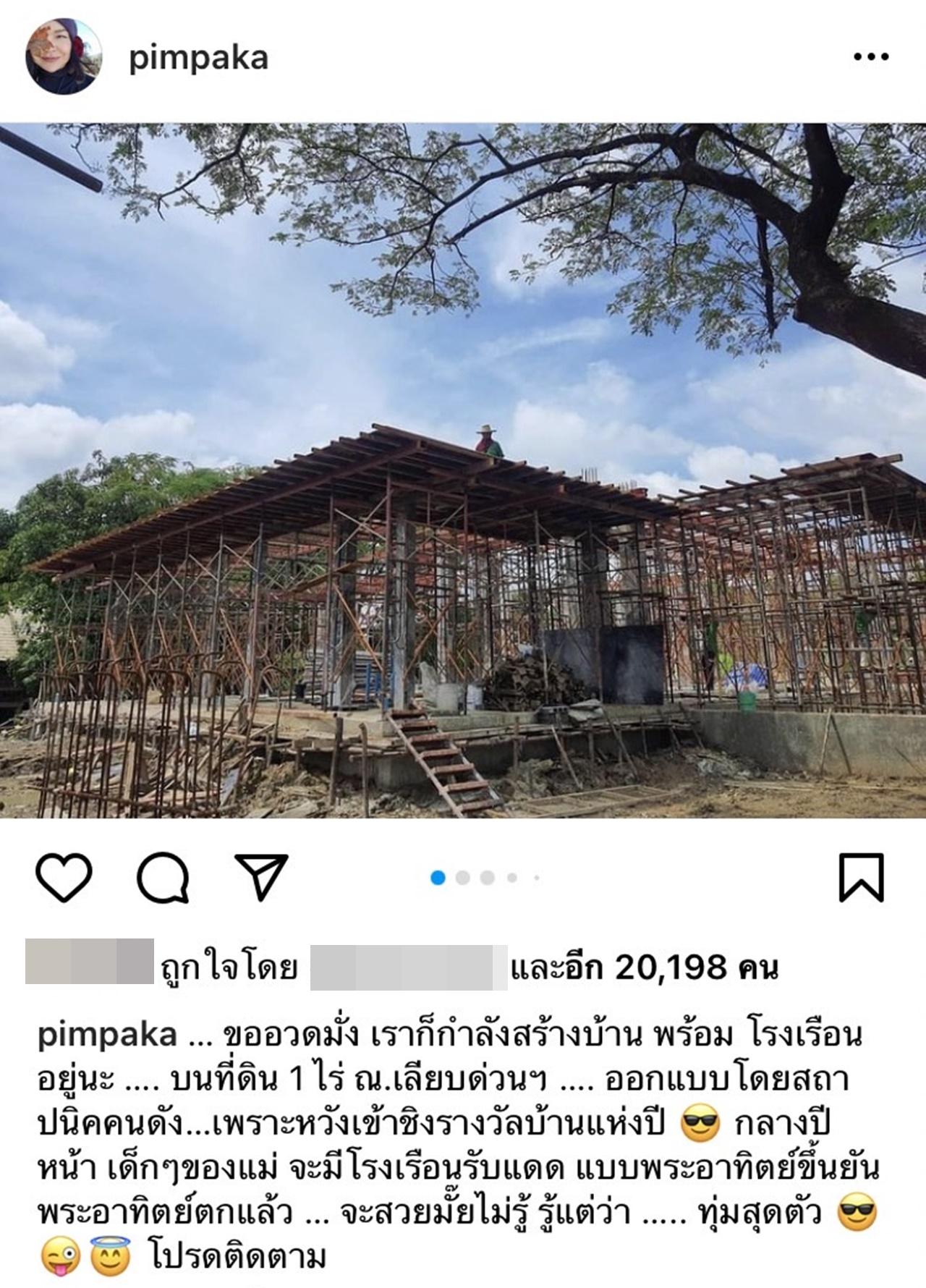 และตอนนี้บ้านหลังใหม่ที่กำลังสร้างเริ่มคืบหน้าแล้ว แม่หมูก็ได้อัปเดตภาพให้แฟนๆ ติดตาม พร้อมเขียนแคปชั่นว่า บ้านหลังนี้แม่ทุ่มสุดตัว อยากให้แฟนๆ ติดตามกันต่อไป