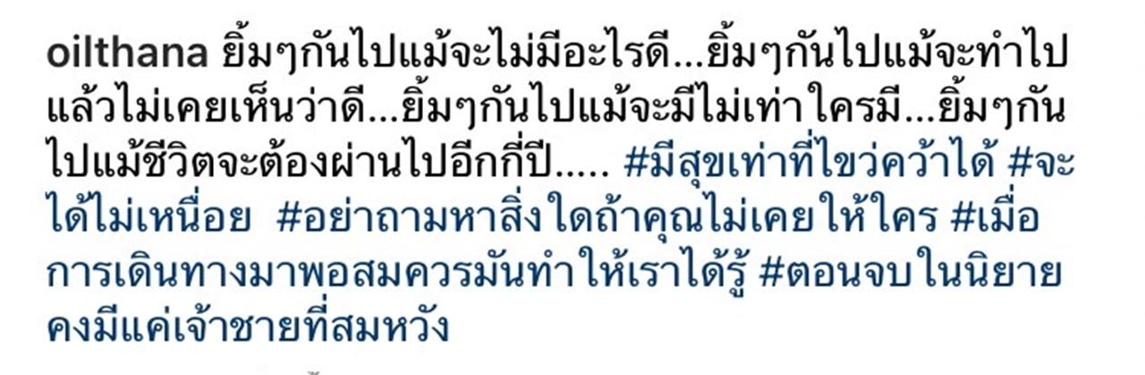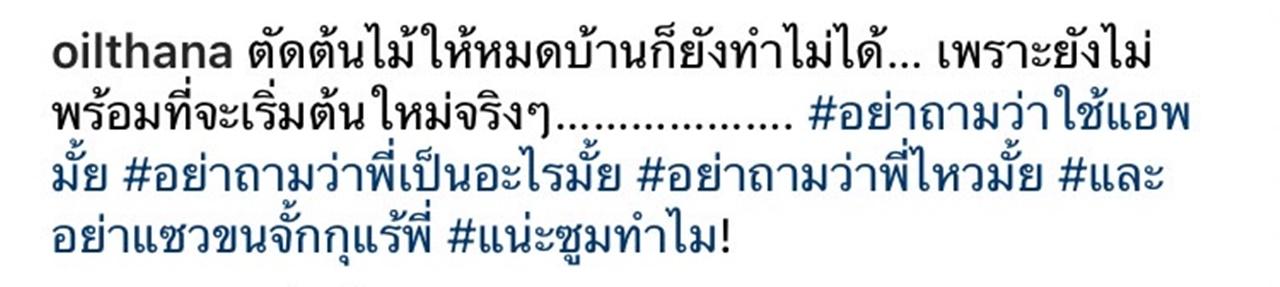 ทำเอาหลายคนเกิดความสงสัยอย่างมาก เพราะพักหลังมานี้ นักแสดงหนุ่ม ออย ธนา มักจะโพสต์ข้อความตัดพ้อคล้ายคนกำลังเศร้าผ่านอินสตาแกรมบ่อยๆ กระทั่งถูกตั้งข้อสงสัยว่า ออย ยังรักกันดีกับภรรยา เธอ รวรีย์ เหมือนเดิมหรือไม่