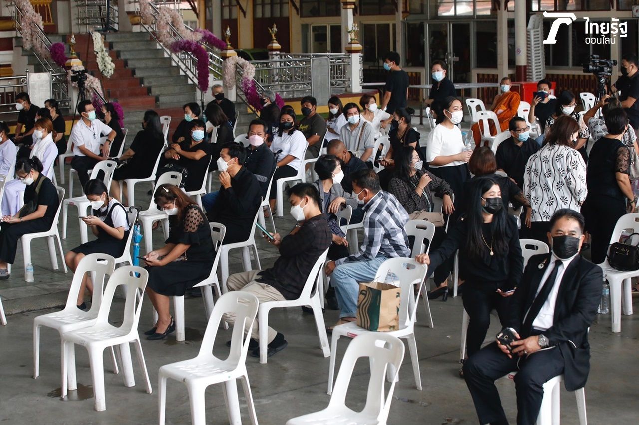 อีกทั้งยังมีเพื่อนๆ ในวงการบันเทิงมาร่วมงาน อาทิ ชมพู สุทธิพงษ์ วัฒนจัง หรือ ชมพู ฟรุตตี้, ปิง กัณพล ปรีดามาโนช หรือ ปิง ฟรุตตี้, เท่ห์ อุเทน พรหมมินทร์ ฯลฯ ซึ่งในระหว่างพิธีรดน้ำศพของอ๊อด เอ้ก ปภัสสรา ภรรยา และ น้องเอิ๊ก ลูกสาว มีอาการโศกเศร้า ส่วน ปิง ฟรุตตี้ น้ำตาไหลด้วยความเสียใจที่เพื่อนสนิทในวงการจากไป.