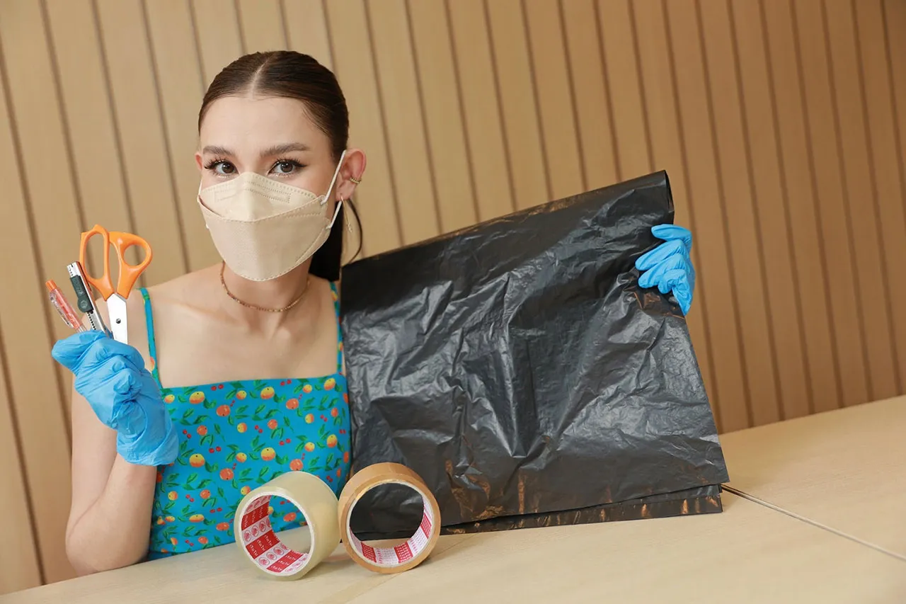 เริ่มจาก ไต้ฝุ่น และ แก้วใส ช่วยกันเตรียมวัสดุเหลือใช้ที่หาง่ายใกล้ตัวได้แก่ กล่องกระดาษแข็งที่เหลือใช้ กรรไกร สกอตช์เทป ไม้บรรทัด ปากกา และ ถุงขยะสีดำ เมื่อเตรียมอุปกรณ์ครบ ทั้งคู่ก็ลงมือทันที แต่ก่อนอื่นต้องไม่ลืมใส่ถุงมือเพื่อสุขอนามัย จากนั้นจึงเริ่มขั้นตอนแรก ตรวจดูความแข็งแรงของกล่อง แล้วนำฝากล่องมาเจาะรูทั้ง 4 ด้าน แต่ละด้านกว้าง 12-15 ซม. และเสริมความแข็งแรงของกล่องตามมุมต่างๆด้วยสกอตช์เทปแล้วก็นำถุงดำมาปูลงในกล่อง แล้วก็นำฝากล่องที่เจาะรู ด้านบนที่ทำเสร็จมาครอบลงบนกล่อง เสร็จแล้วจึงนำถุงดำมาสวมลงบนฝากล่องอีกครั้ง ทั้งนี้ ก็เพื่อสะดวกหลังการใช้งานเสร็จจะสามารถรวบปากถุงนำไปทิ้ง เป็นอันเสร็จสิ้น ส้วมกระดาษ ง่ายๆแค่นี้