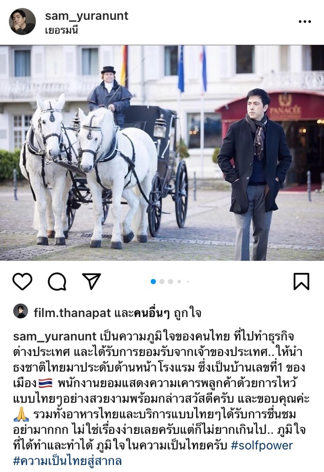 โดย แซม ได้โพสต์ภาพโรงแรมของตัวเอง พร้อมเขียนบอกเล่าถึงการทำธุรกิจที่ต่างประเทศ ไม่ใช่เรื่องง่ายเลยแต่ก็ไม่ยากจนเกินไป อีกทั้งยังภูมิใจสุดๆ ได้นำความเป็นไทยสู่สากลด้วย