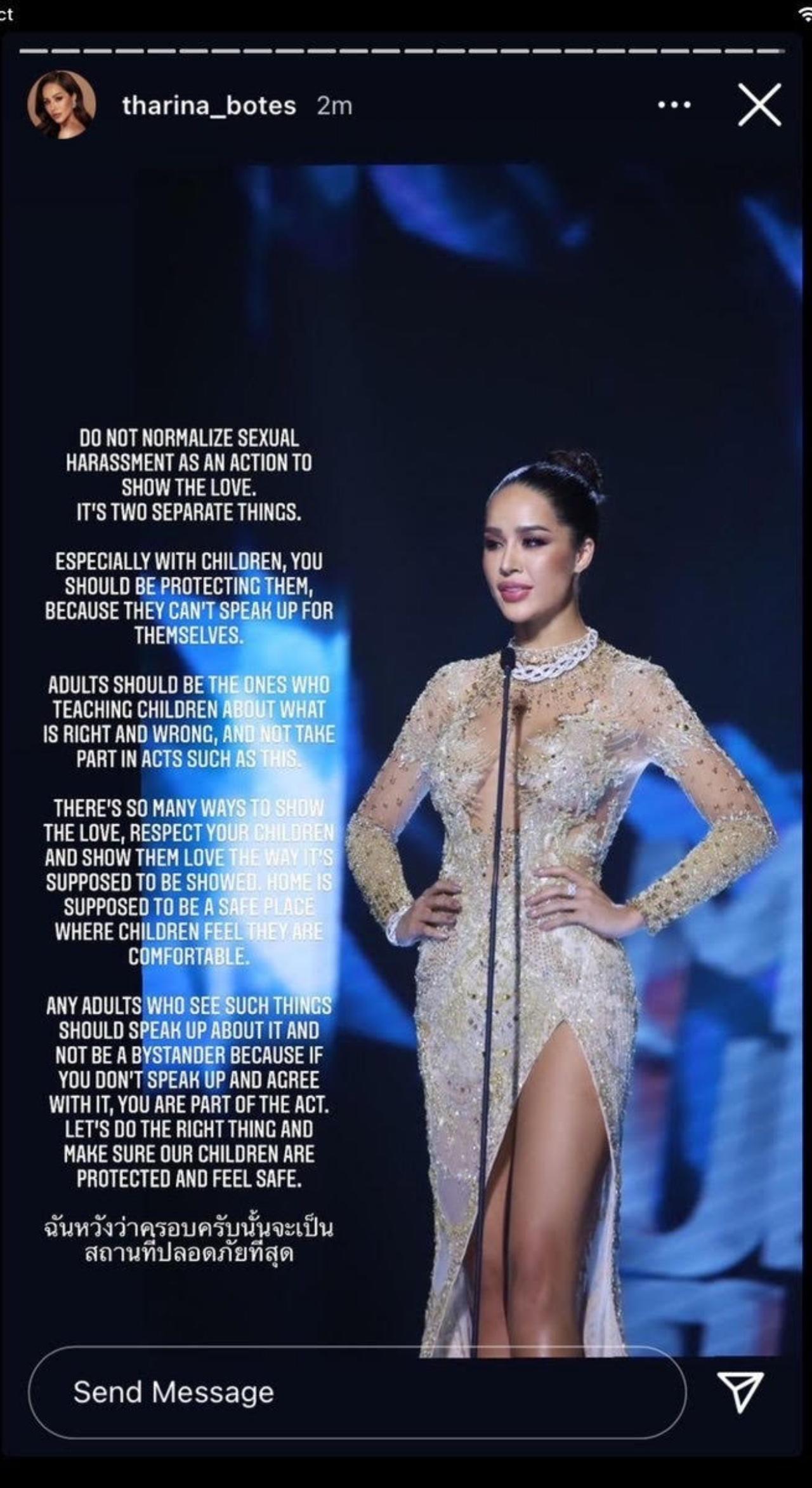 โพสต์ได้น่าคิดมาก จากนางงามหุ่นเป๊ะ ขนม ทารีน่า โบเทส รองอันดับ 1 มิสยูนิเวิร์สไทยแลนด์ Miss Universe Thailand 2021 ได้โพสต์ยาวๆ ลงไอจีสตอรี่ Tharina Botes ถึงอีกประเด็นใหญ่มากๆ ของสังคมไทยเรา